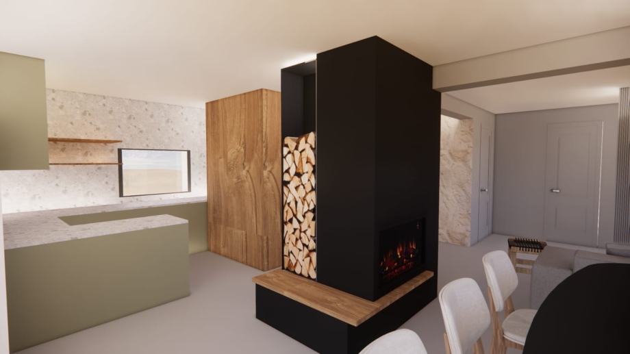 Na tom djelu kuće nalazi se i kotllovnica ; sama konoba ima kuhinju i neizostavni kamin te toaletni prostor.