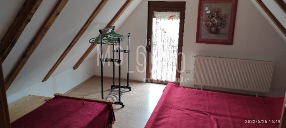 Potkrovlje do kojeg se dolazi jasenovim stepenicama se sastoji od: podesta, kupaone te dvije spavaće sobe.