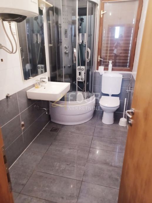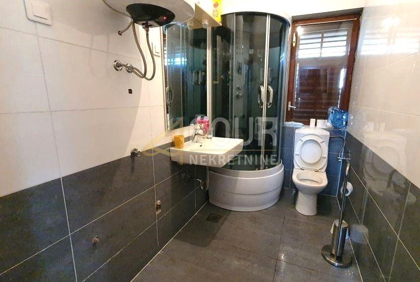 U prizemlju se nalazi kuhinja (ručno rađena - ariš), dnevni boravak te adaptirana kupaonica. Na prvom katu su smještene tri spavaće sobe i kupaonica.