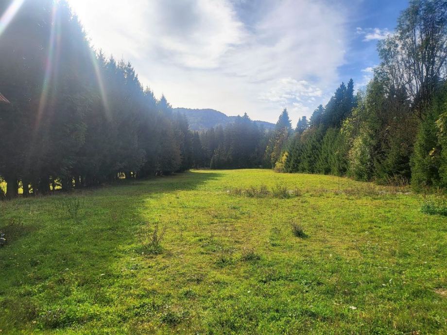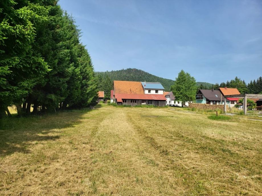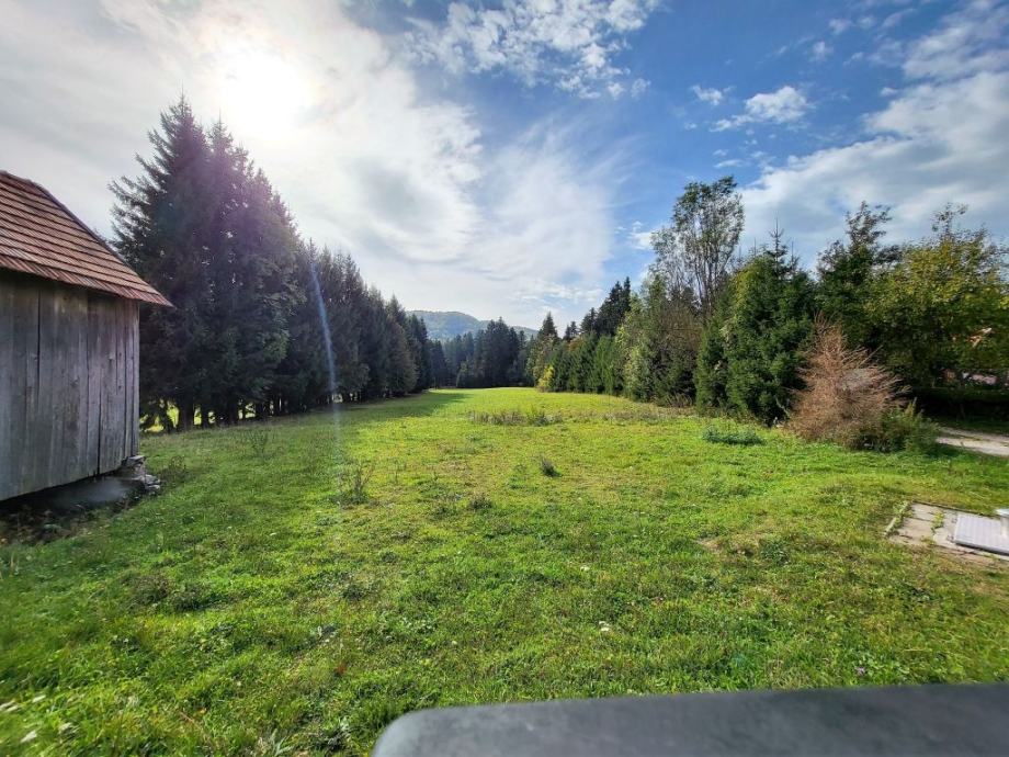 Gorski kotar, Mrkopalj okolica, veliko građevinsko zemljište okruženo šumom površine 9754 m2, širina parcele uz cestu iznosi 58 m, dubina u prosjeku 100 m, pogodno za gradnju više objekata i parceliranje. Uz zemljište se prodaje kuća tlocrtne P+Pk površine 210 m2 i gospodarska zgrada.