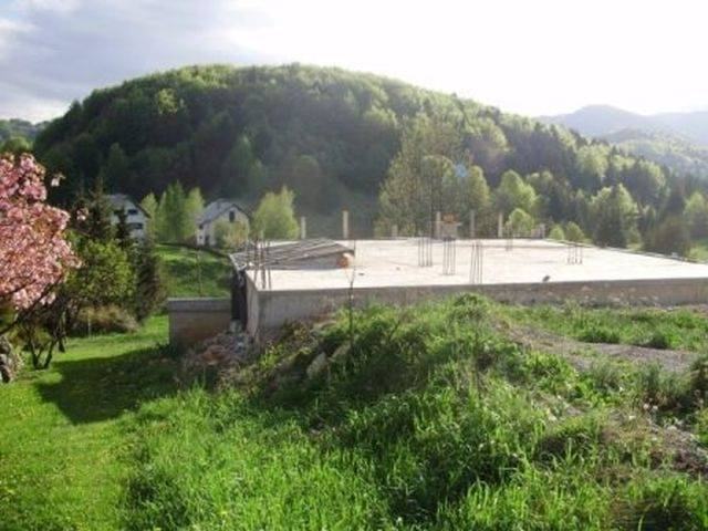 Delnice okolica, Crni Lug, 1133 m2 građevinskog zemljišta sa započetom gradnjom objekta, nalazi se na povišenom dijelu, prekrasan pogled na okolicu i planinu Risnjak