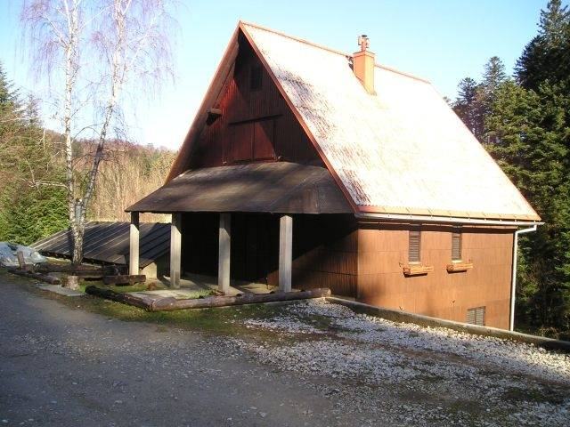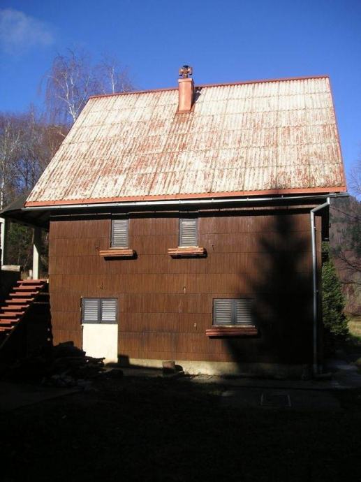 Lokve okolica, Mrzla vodica, vikend kuća 216 m2 na osami, površina građevinskog zemljišta je 8193 m2, nalazi se na mirnom mjestu okružena šumom, po cijeloj duljini terena prolazi manji potok vode koji izvire u neposrednoj blizini, velika nadkrivena terasa sa pečenjarom