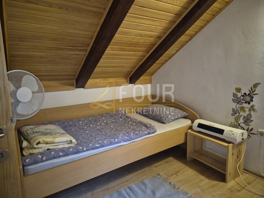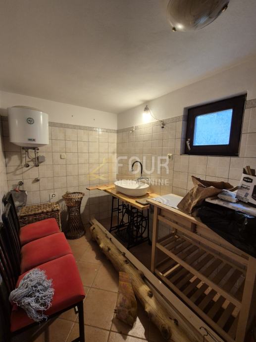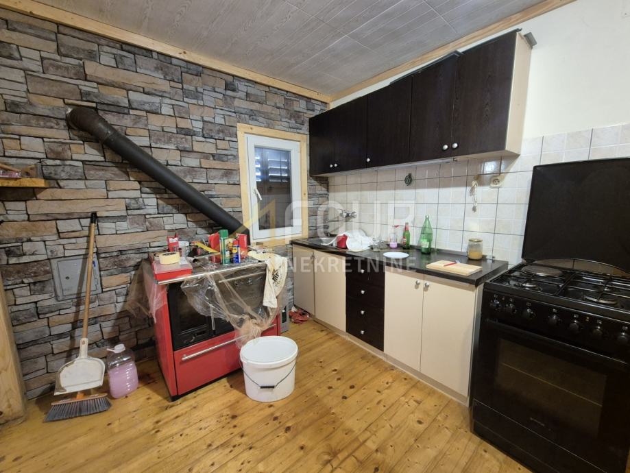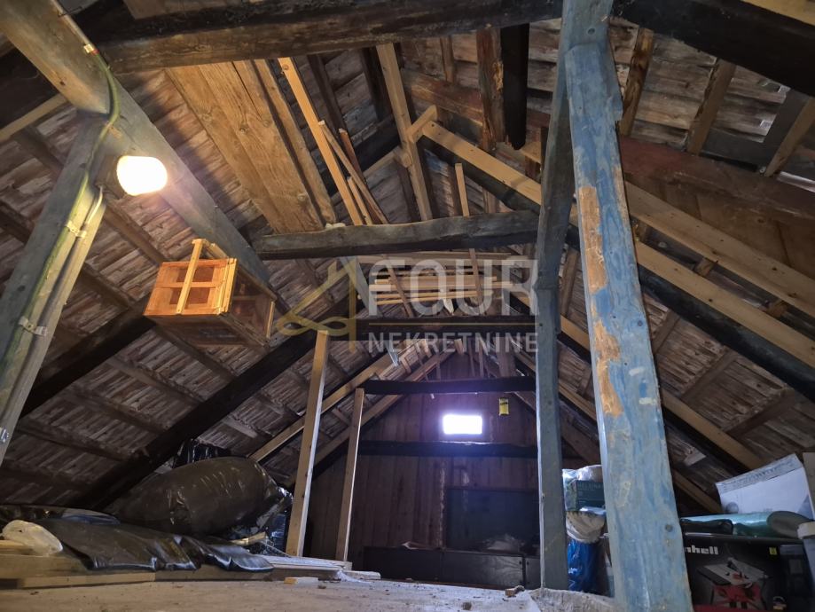 Prva, starija kuća je djelomično adaptirana, s uporabnom dozvolom prije 1968. godine. U suterenu se nalazi uređen prostor za druženje s jacuzzijem i dodatnim spremištem. Na katu je dnevni boravak s kuhinjom i peći na drva, spavaća soba i kupaonica, pri čemu su prostori djelomično uređeni s obloženim zidovima, laminatima i PVC stolarijom. Potkrovlje je neuređeno te pruža mogućnost dodatnog proširenja, a krov je stariji, ali u dobrom stanju.