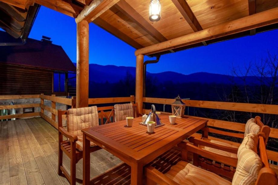 Na prvom se katu nalaze kuhinja s blagovaonicom i dnevnim boravkom otvorenog tipa, spavaća soba, te kupaonica. Iz dnevnog se boravka izlazi na natkriveni balkon s kojeg se pruža predivan pogled na prirodu.
