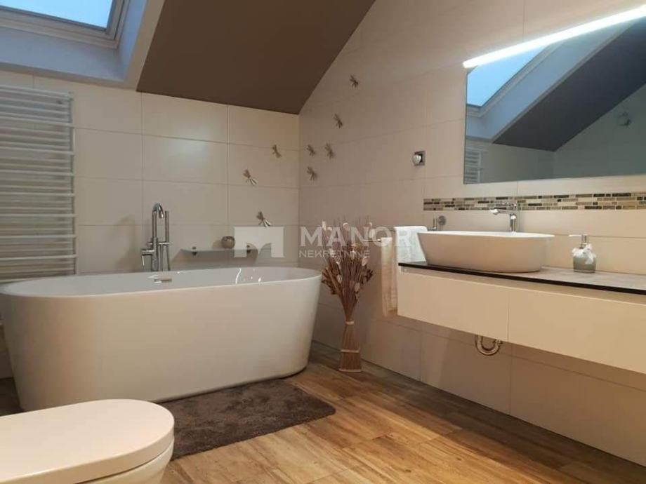 Na katu se nalazi šest spavaćih soba, balkon, walk in garderoba, kupaonica sa samostojećom kadom,