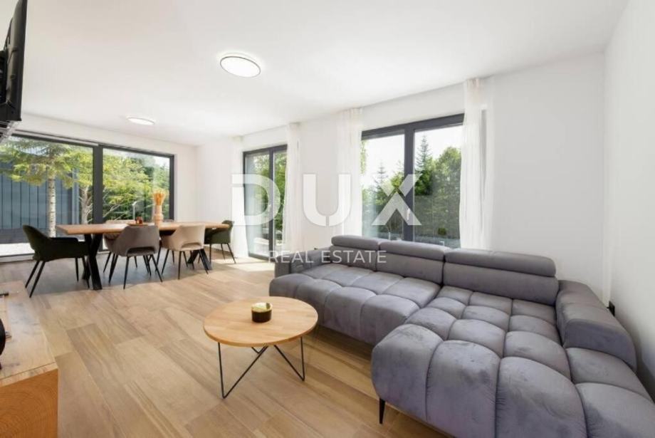 Staklene površine omogućuju prirodno svjetlo i pogled na šumu Gorskog kotara.