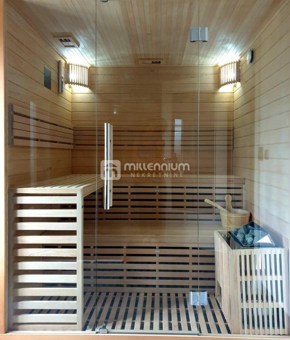 Razvedena je na prizemlje i kat ukupne stambene površine 360m2. U prizemlju se nalazi veliki dnevni boravak, kuhinja, kupaonica, ostakljeni zimski vrt, garaža, spremište, hodnik s galerijom te wellness kojeg čine finska sauna i jacuzzi.