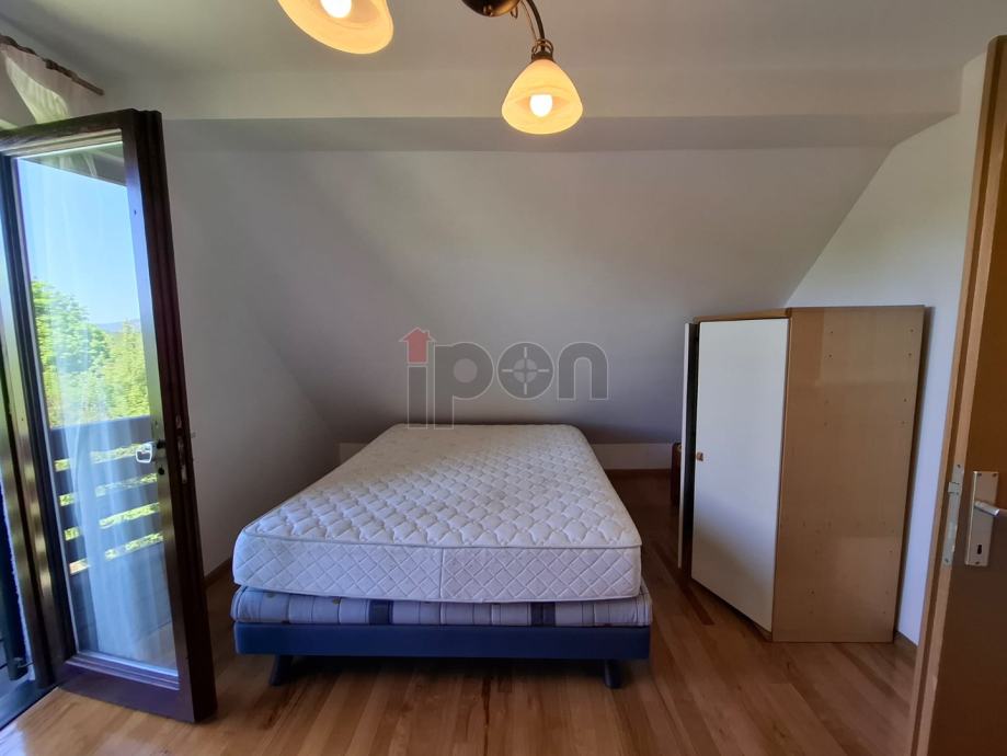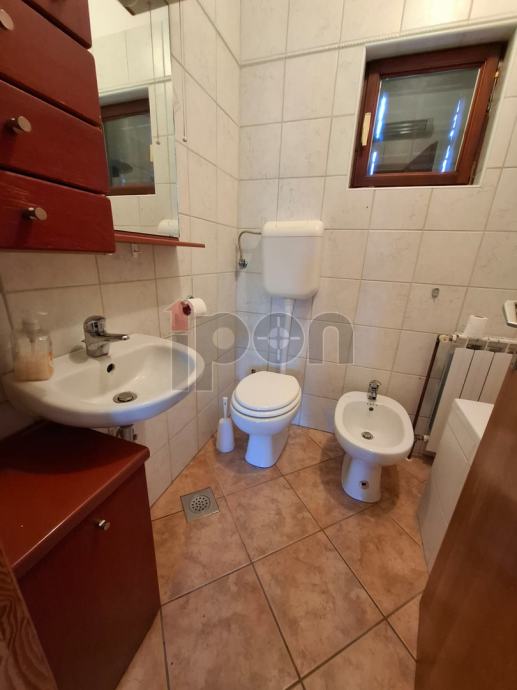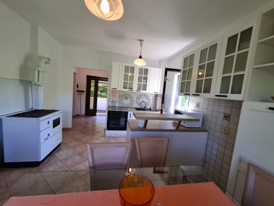 Kuća ima 184 m2 a sastoji se od prizemlja gdje je smještena velika garaža, konoba i natkrivena terasa. Vanjskim stepenicama penje se na kat gdje se nalazi nova kuhinja sa blagovaonicom, kupaonica i prostrani dnevni boravak, te velika terasa s otvorenim pogledom na zelenilo Julijskih Alpa. Lijepim drvenim stepenicama penje se na 2. kat gdje su smještene 2 spavaće sobe, balkon, garderoba i toalet. U visokom potkrovlju je dodatni prostor koji treba urediti. Kuća ima centralno grijanje na drva. Vanjska stolarija je drvena kao i grilje a međukatna konstrukcija je betonska ploča.