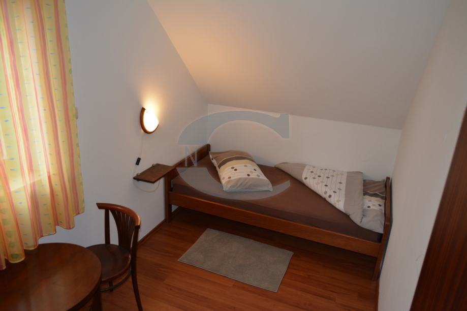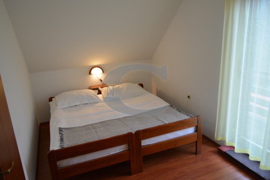 Na katu se nalaze dvije spavaće sobe, jedna dvokrevetna i jedna trokrevetna, iz te sobe izlazi se na mali balkon.