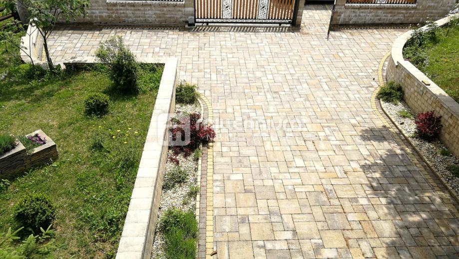 Na prednjem dijelu okućnice nalazi se popločeni parkirni prostor za više automobila.