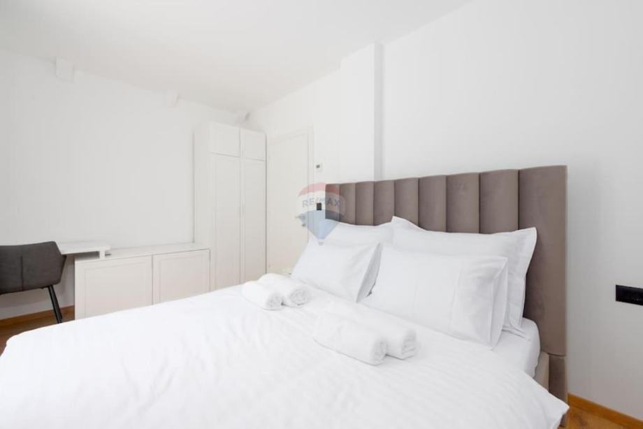 Na gornjoj etaži smještene su dvije spavaće sobe od kojih svaka ima svoju kupaonicu i na toj etaži smješten je jacuzzi.