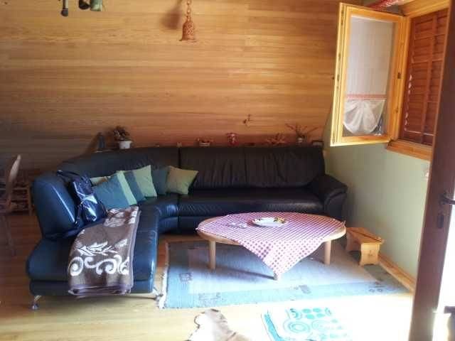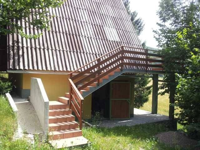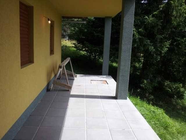 Mrkopaljski kraj, okolica, vikend kuća vanjskih dimenzija 7 x 6 m ukupne površine 125 m2 (kuhinja sa blagovaonom, dnevni boravak, kupaonica, 2 sobe, garaža, podrum), 1541 m2 okućnice, nalazi se na povišenom mjestu okružena šumom sa lijepim pogledom