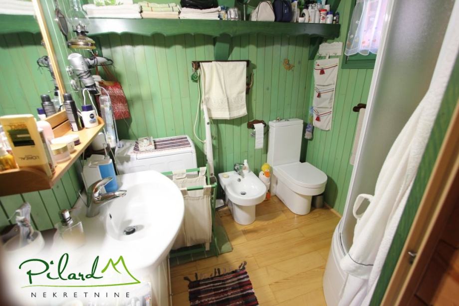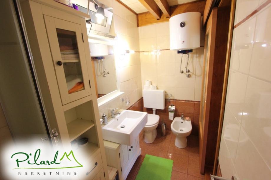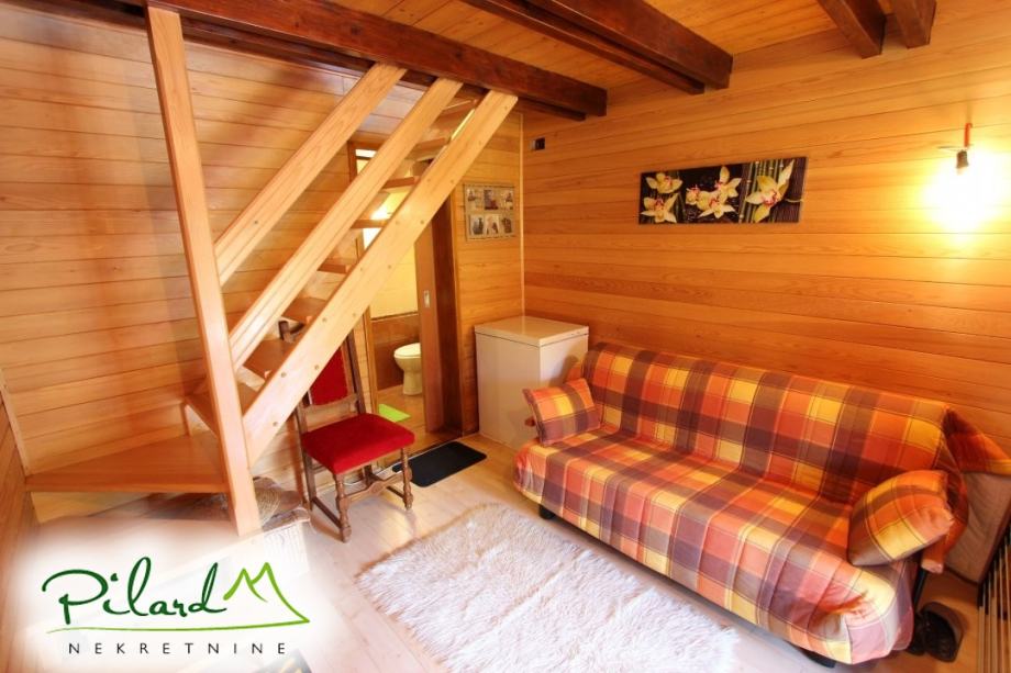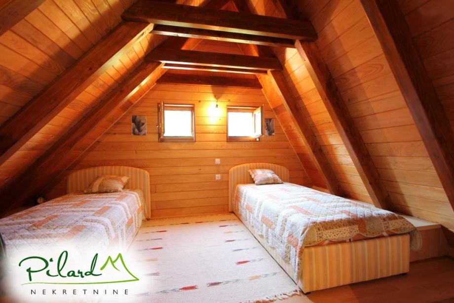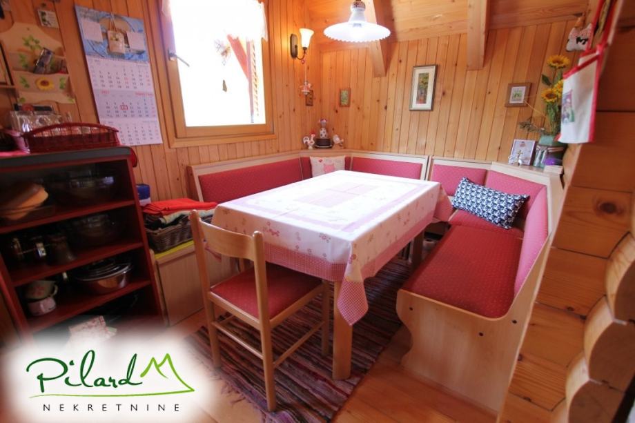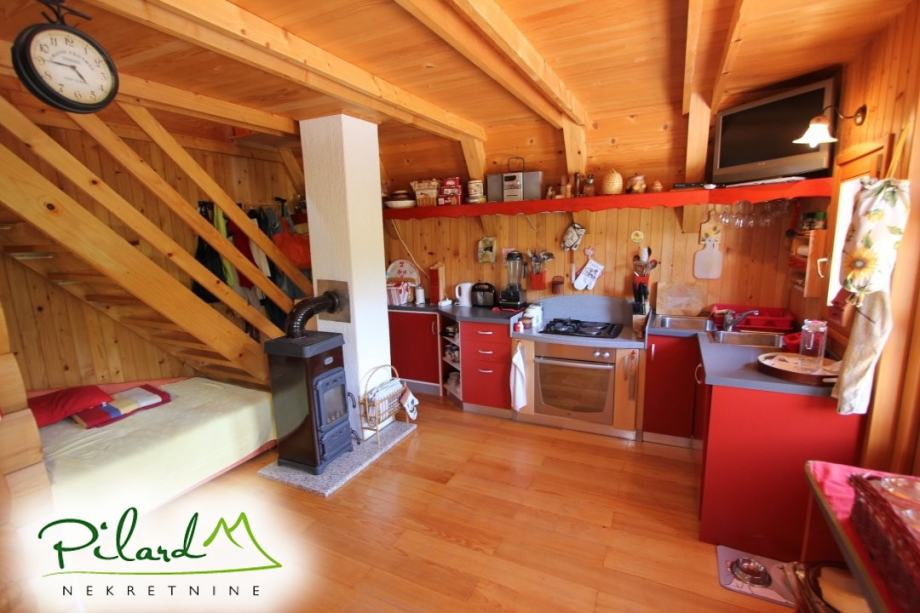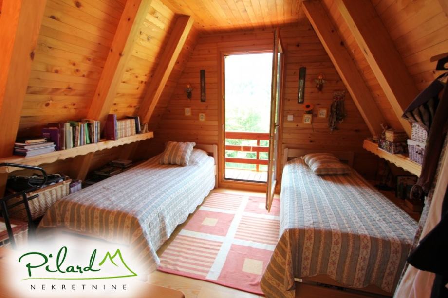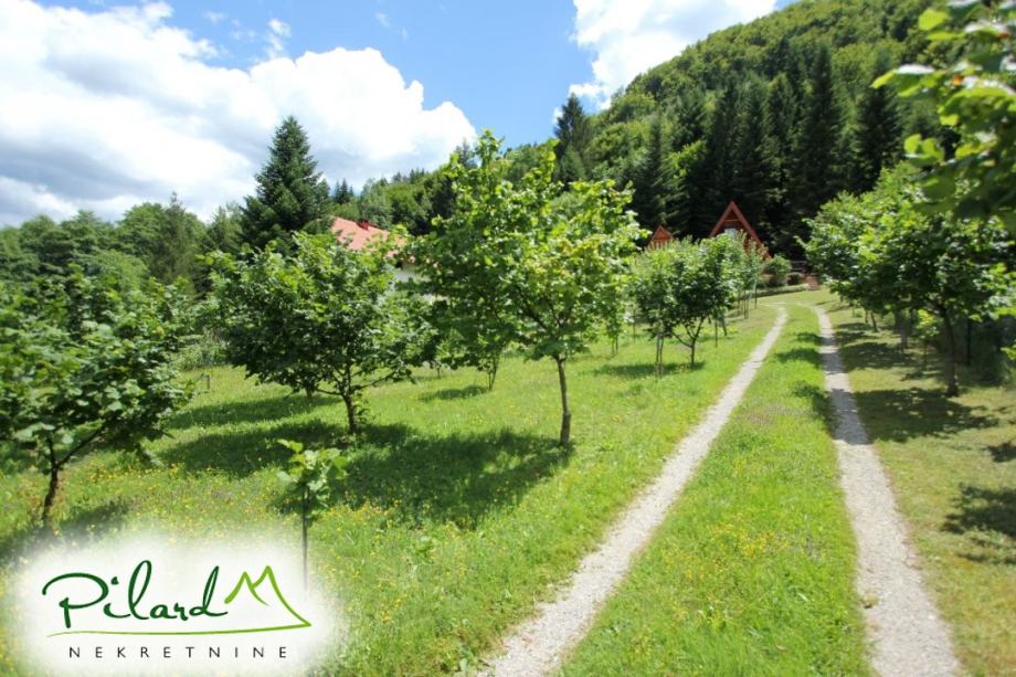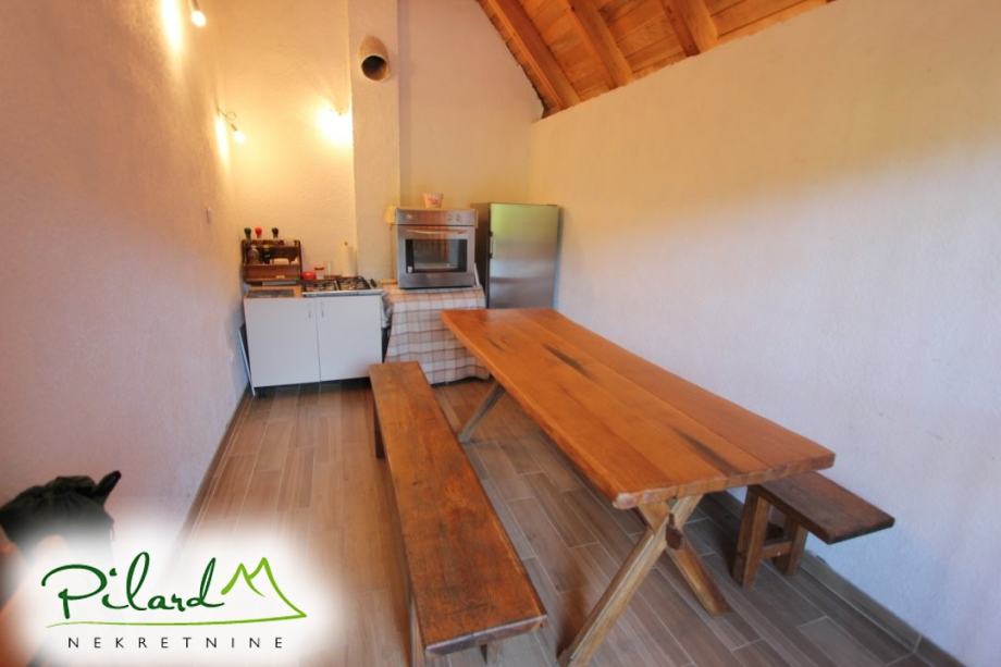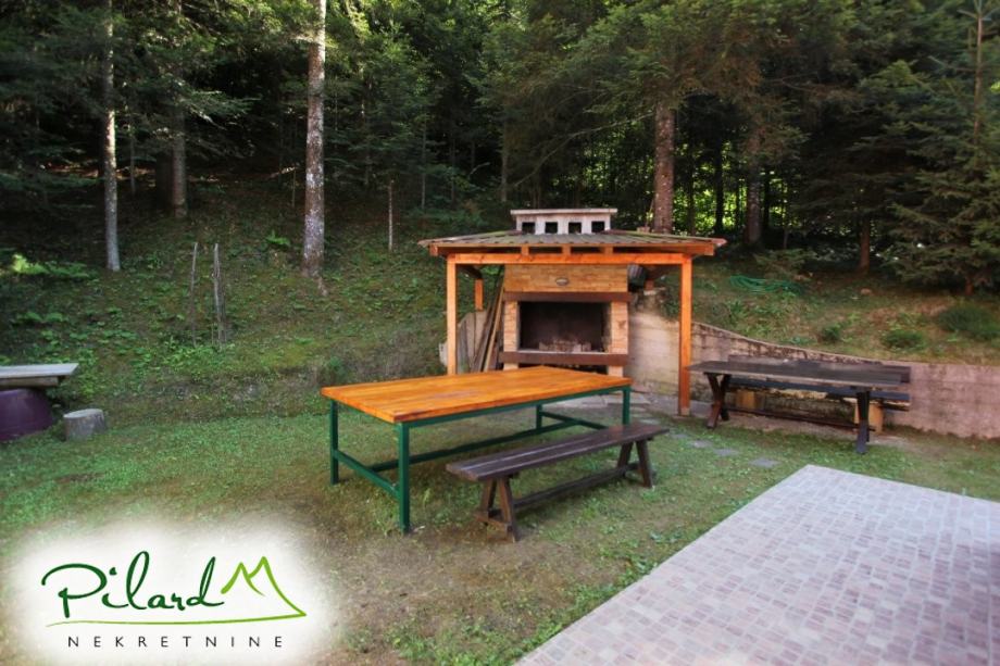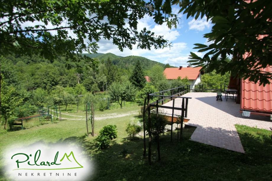 Na svega 70 metara od riječne plaže, na 230 metara nadmorske visine smjestila se dobro uređena vikend kuća složena od jednog većeg i jednog manjeg objekta međusobno spojenog u jednu cjelinu. Preko prekrasne terase dolazi se do većeg djela kuće u kojem je smještena kuhinja sa blagovaonicom i dnevnim boravkom u visokom prizemlju dok je na katu spavaća soba sa balkonom iz kojega puca pogled na korito rijeke Kupe. Ograđenim podestom dolazi se do manjeg djela vikend kuće u čijem visokom prizemlju se nalazi dnevni boravak, kupaonica i ljetna kuhinja a u potkrovlju soba. Sutern kuće je u jednom djelu podrum dok se u drugom djelu nalazi garaža. Neposredno iza kuće, u potpunoj intimi, nalazi se prostor za druženje sa pečenjarom.