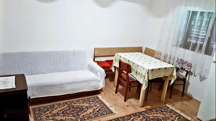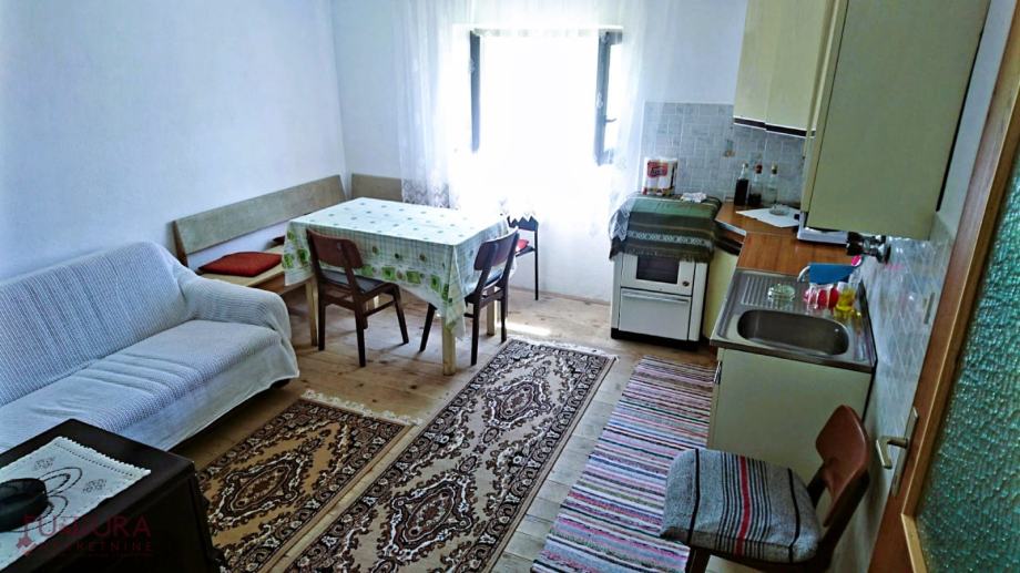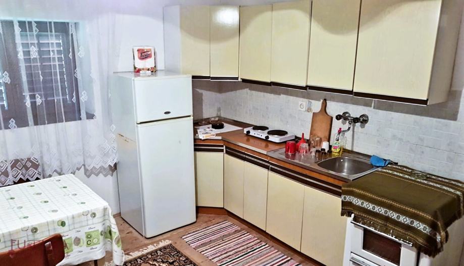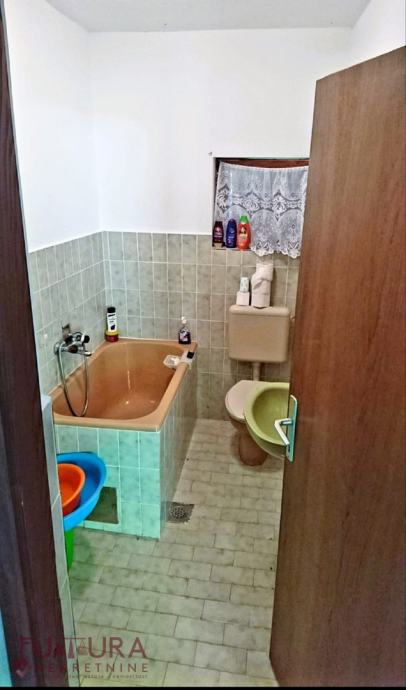 Prizemlje 70 m2: jedna spavaća soba, kuhinja + blagovaona, kupaonica i ostava.