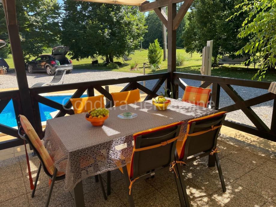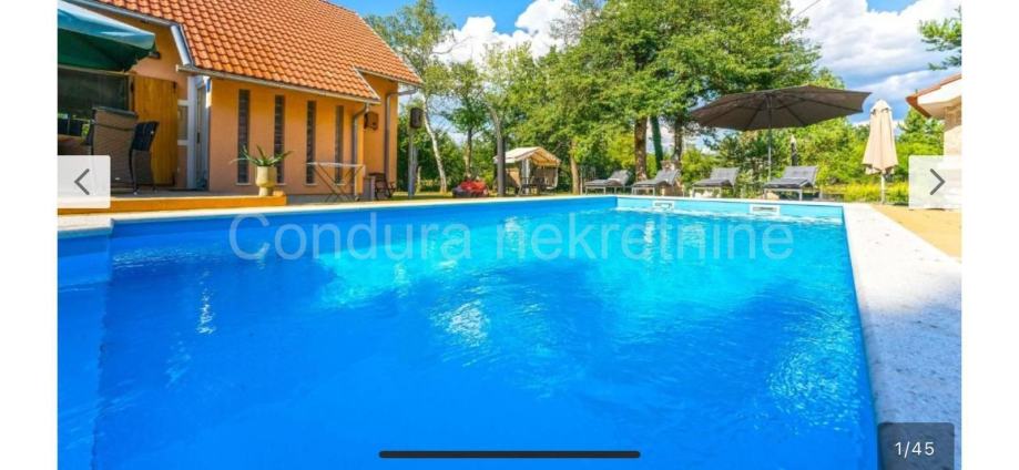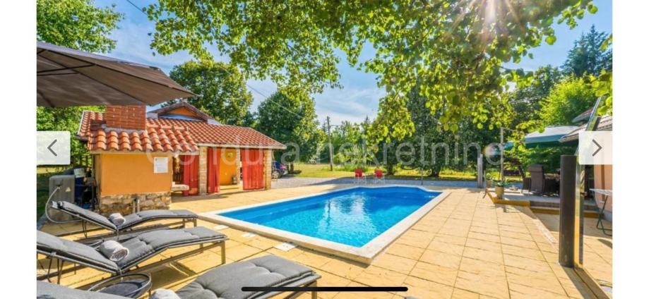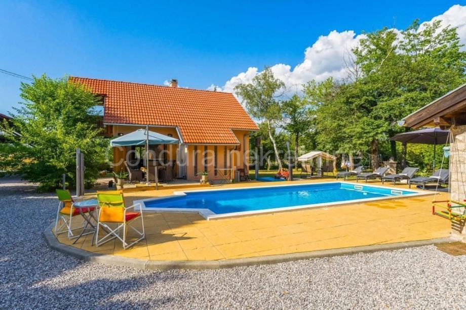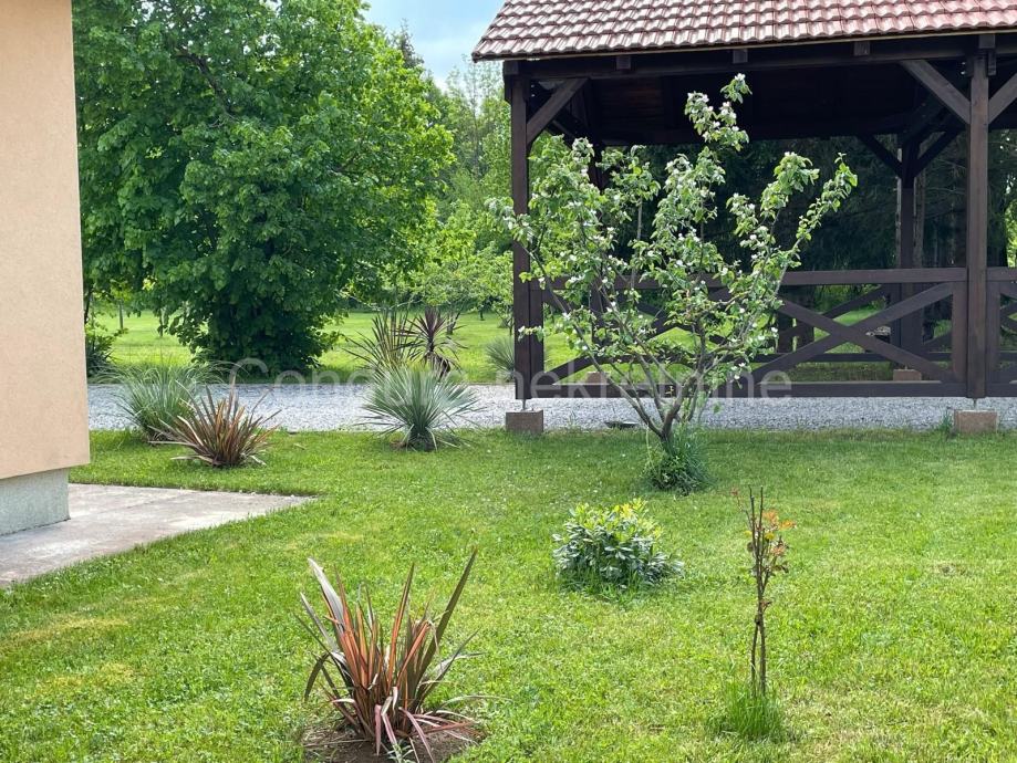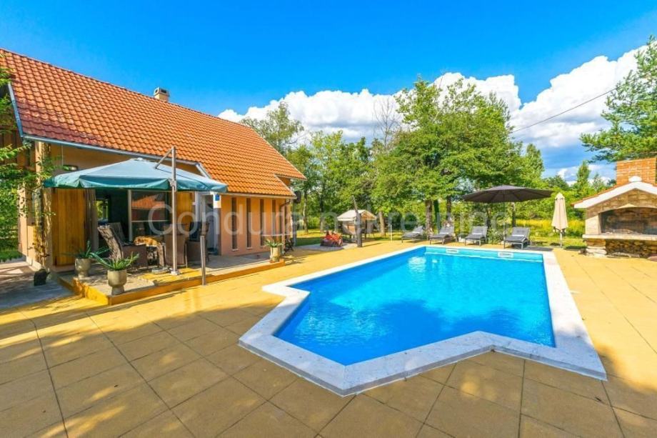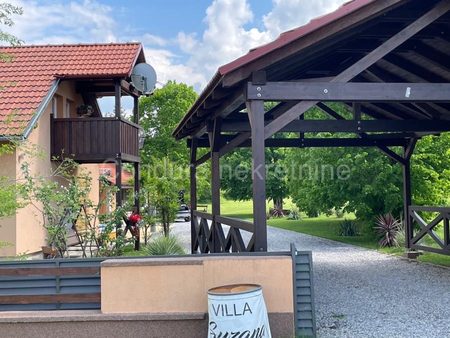 Također uz kuću se nalazi dječje igralište, pomoćna zgrada (17 m2) natkriveni ulaz na imanje, parkiralište te prostrana okućnica na više od 8000 m2.