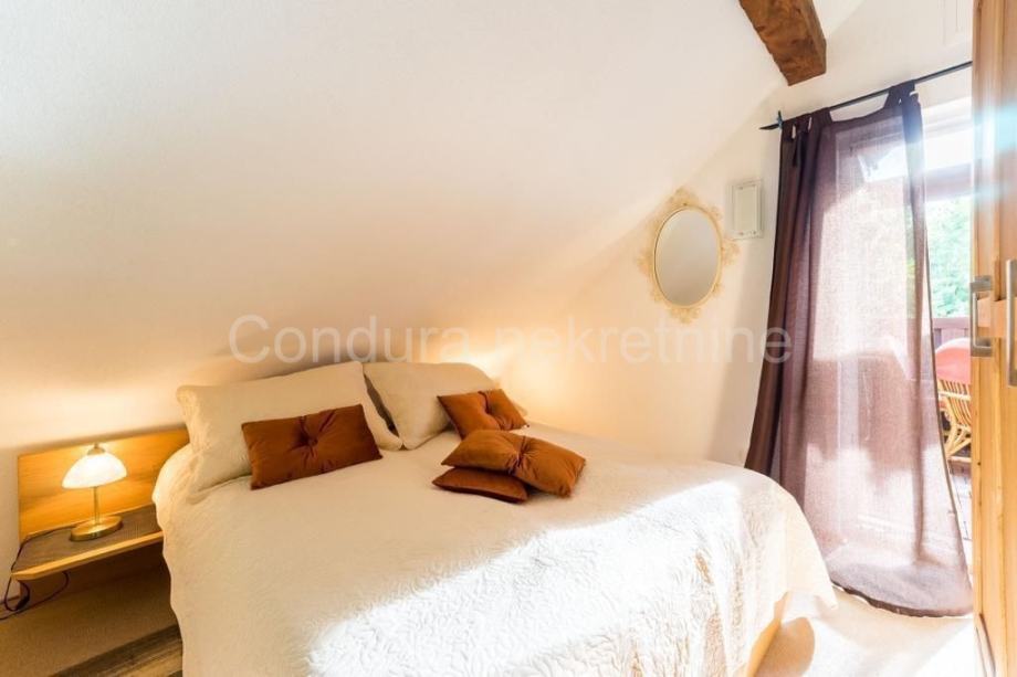 Manja kuća (64 m2) obuhvaća jednu stambenu jedinicu - moderno uređen apartman s jednom spavaćom sobom i natkrivenom terasom.