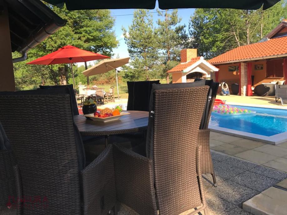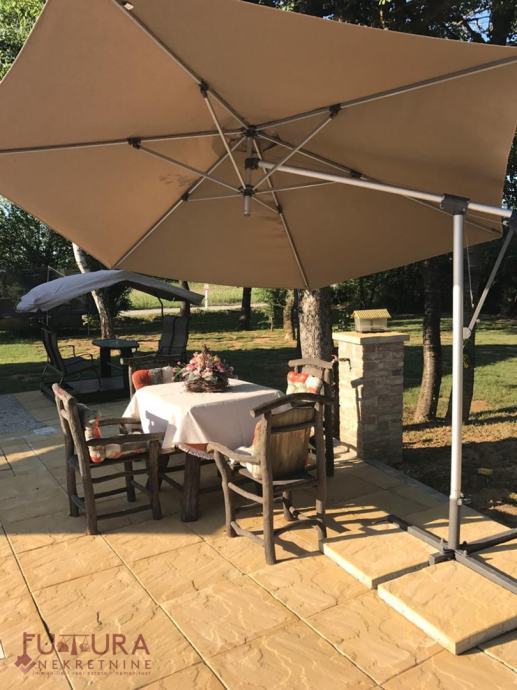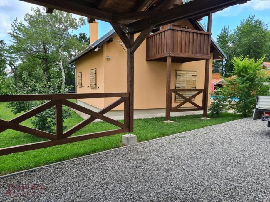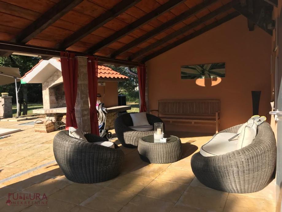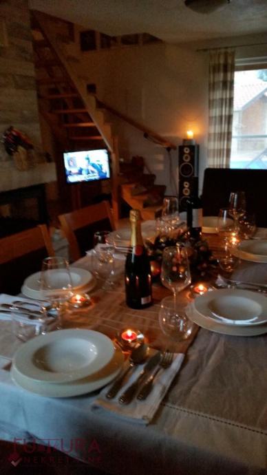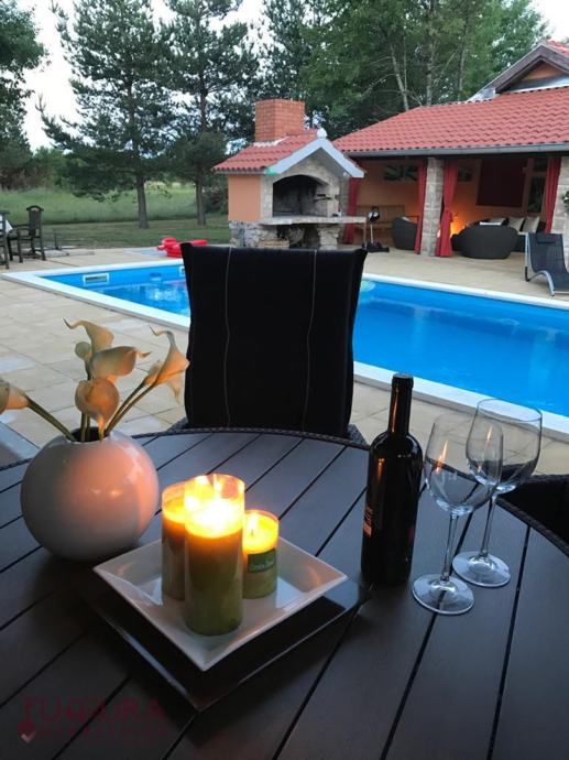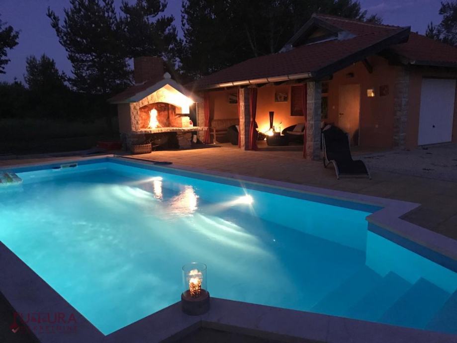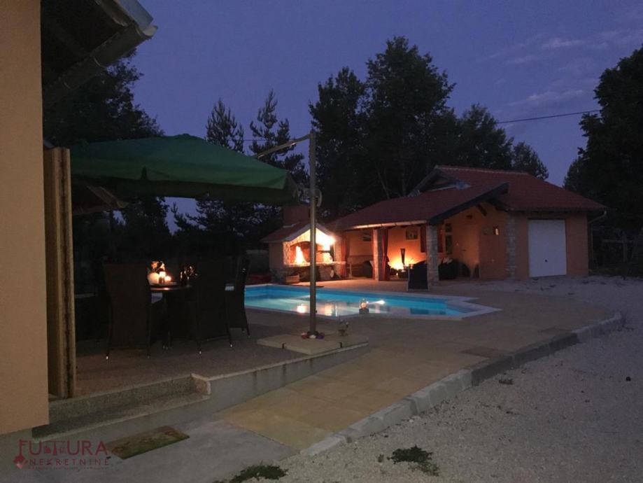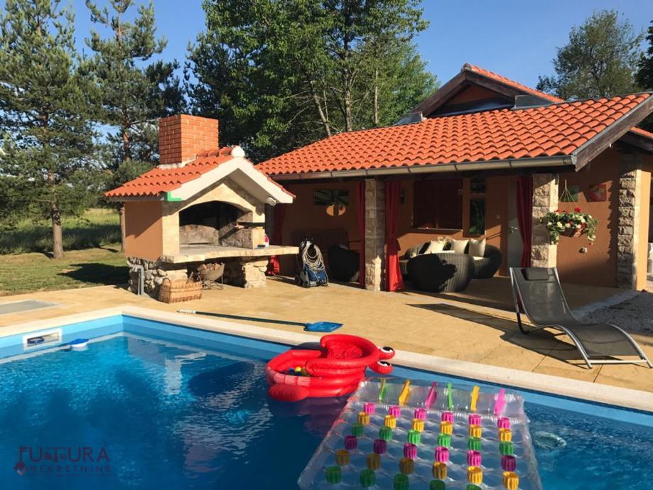 Posjeduje više parkirnih mjesta sa nastršnicom, bazen, uređenu okućnicu, dječje igralište, garažu, komin, itd...