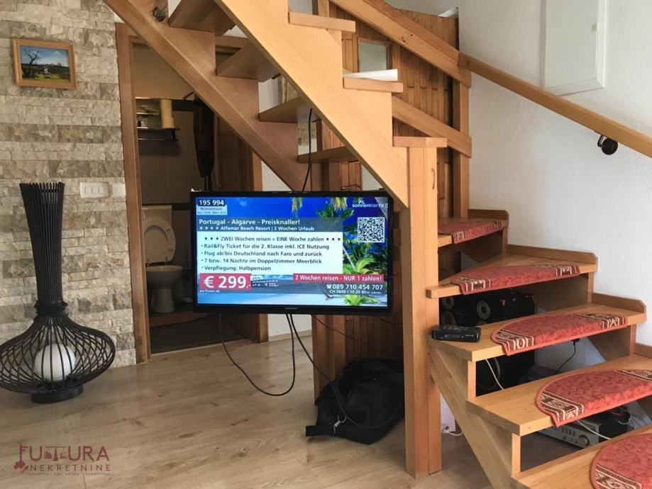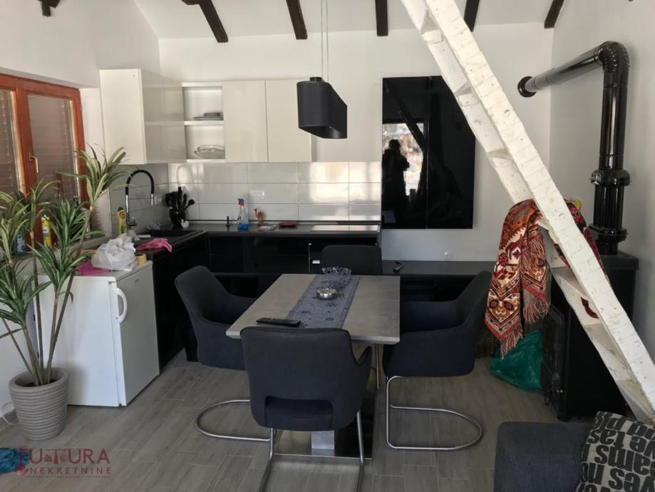- prizemlje: dnevni boravak + kuhinja + blagovaona i wc.