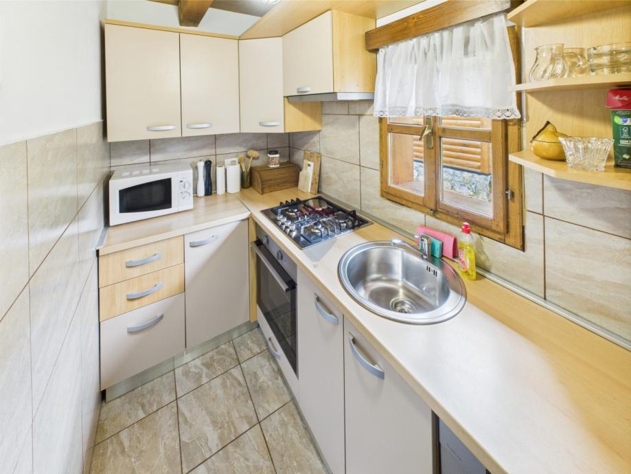 U kući Vila Velebita se nalazi dnevni boravak koji je povezan sa kuhinjom, blagovaonicom i kupaonicom te na katu imamo dvije prostrane spavaće sobe sa dva bračna kreveta i tri ležaja ukupnog kapaciteta za 7 ljudi , odvojeni toalet se također nalazi na 1. katu.