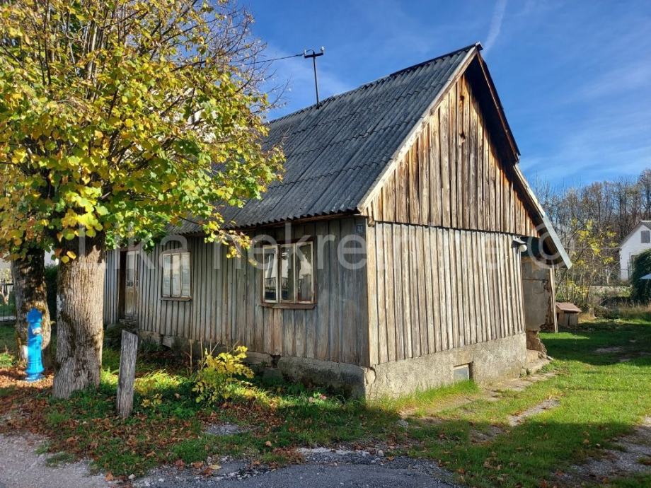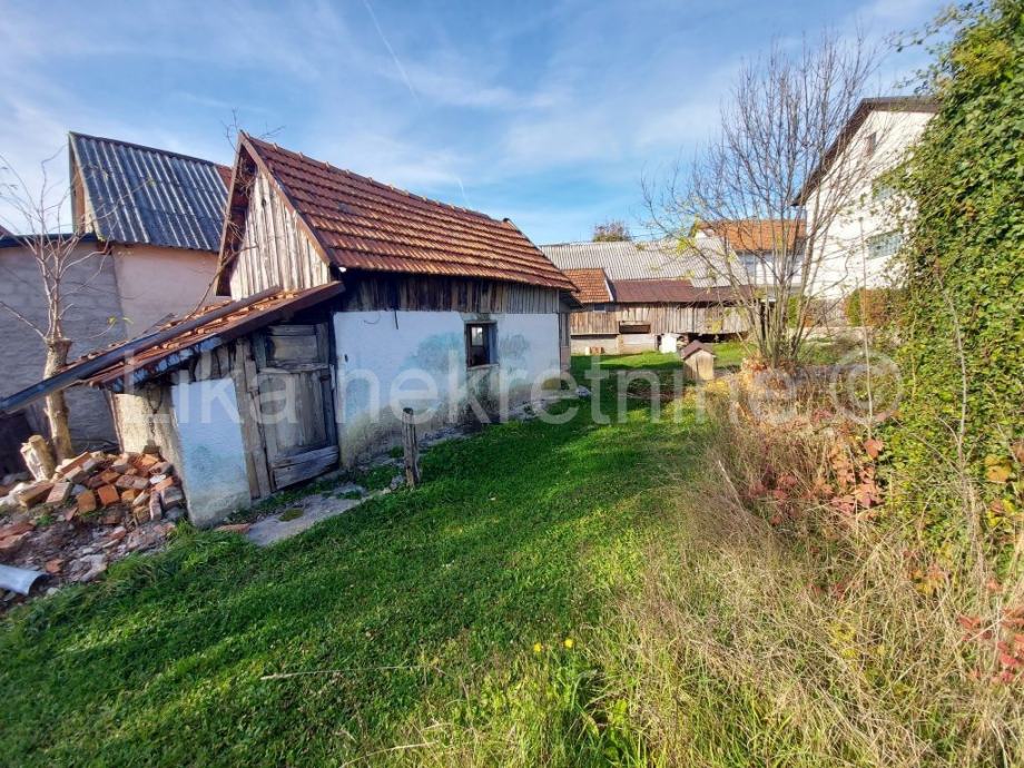 GOSPIĆ - Žabica, starinska samostojeća kuća prizemnica, dvorišna zgrada i drvarnica. Tri ucrtana objekta na katastarskoj čestici površine 775 m2, na koju se nadovezuje oranica od 651 m2 što čini cjelinu. Kako je drvena kuća građena prije "68 godine ( uvjerenje te kopija snimke iz zraka )što zamjenjuje građevinsku dozvolu, kuća ima priključke vode, struje, septičku jamu, uz samu cestu, asfaltirana ulica. Mirna lokacija, blizina centra grada. Uredno vasništvo.