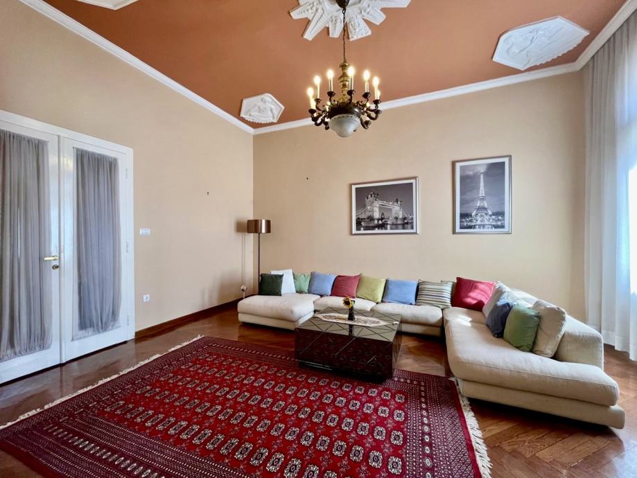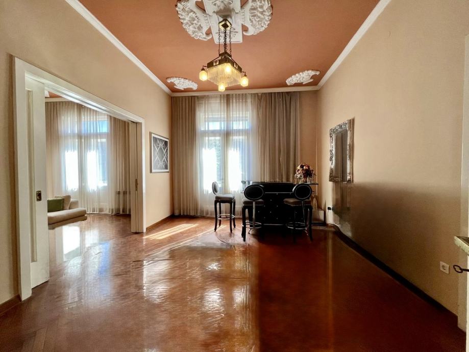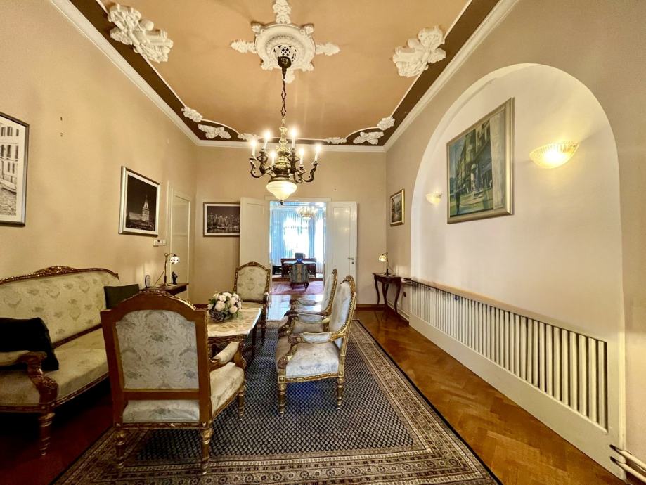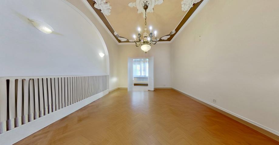 Predstavljamo vam prostrani građanski stan visokih stropova, površine 200 m2 + 29 m2 podruma, smješten na prvom od ukupno dva kata povijesne višestambene zgrade u Donjem Gradu, samom srcu grada gdje je sve na dohvat ruke. Ovaj stan se zadnje koristio kao ured, a sastoji se od čak 8 soba, kupaonice s WC-om, hodnika i balkona. Ističe se svojom centralnom pozicijom, rasporedom koji se da modificirati, te dizajnerskim / antiknim namještajem i uređenjem koji dodatno doprinose šarmu koji stan ima.