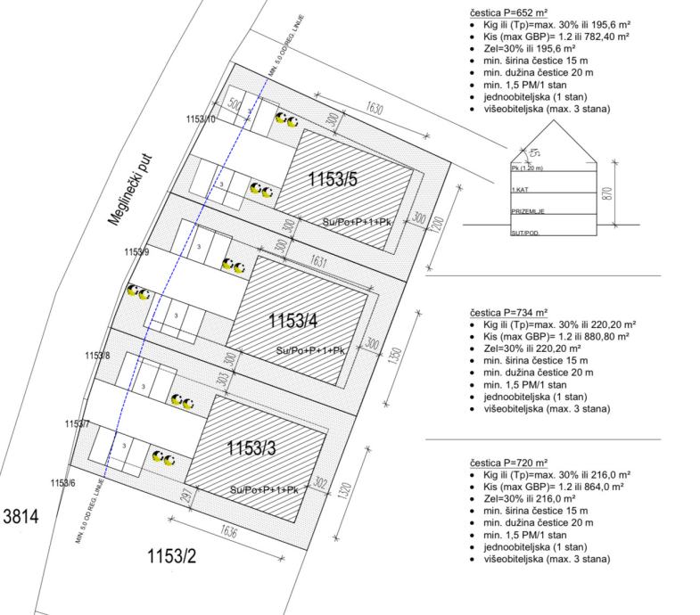 · Koeficijent izgradivosti (Tp)=max. 30% ili 216,0 m²