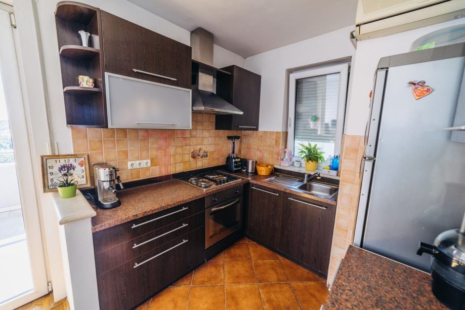 Stan se sastoji od hodnika, kupaonice, dvije sobe, dnevnog boravka, blagovaonice i kuhinje. Stan je kompletno namješten i opremljen svim potrebnim kućanskim aparatima. Najveća posebnost stana je predivna, prostrana terasa od približno 40 m² koja je južno orijentirana. Orijentacija stana je većim dijelom na jug, što osigurava jako puno dnevnog svjetla tijekom cijelog dana.