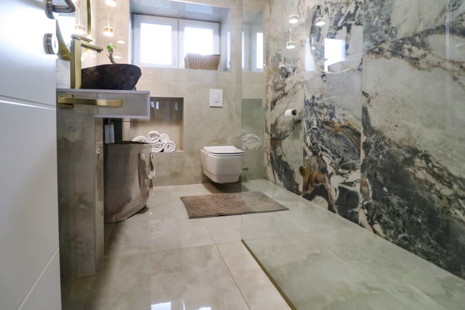 Uz stan dolazi GARAŽA s dva parkirna mjesta i VANJSKO NENATKRIVENO PARKIRNO MJESTO.
