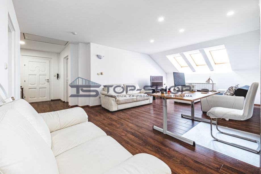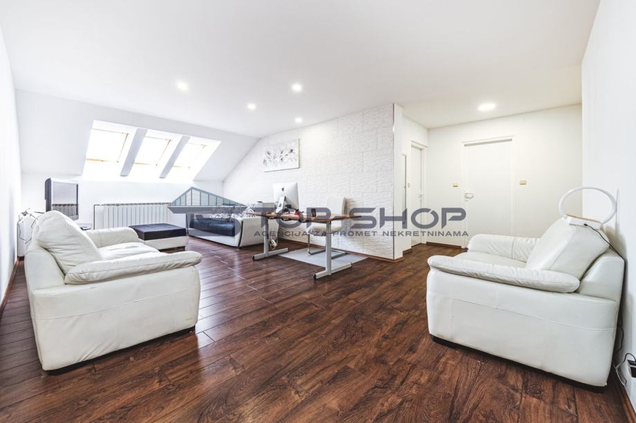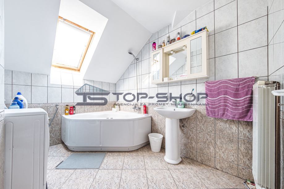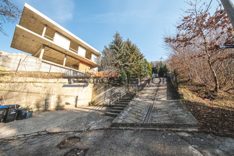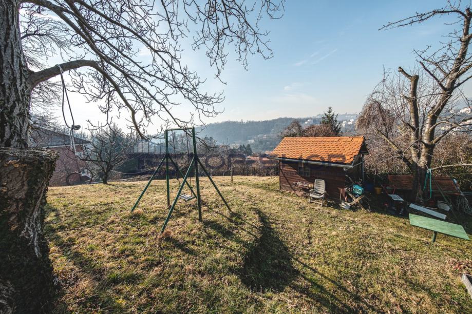 Kuća ima velike terase ,mjesto za druženja sa drvenom kučicom i pogledom na Zagreb, veliku garažu (cca 90 m2) te 10- tak parkirnih mjesta .