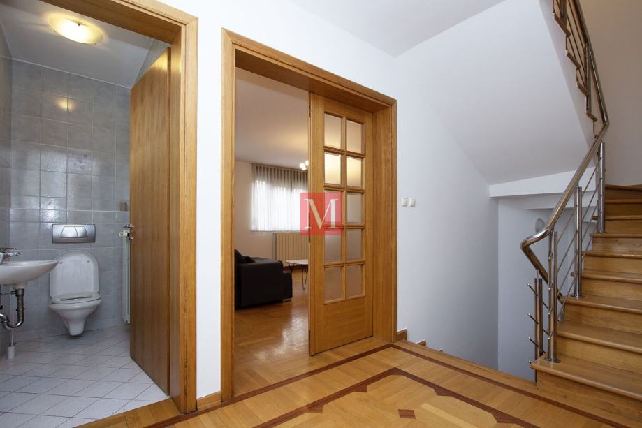 Stan se prostire na 2 etaže i sastoji se od 3 spavaće sobe, 2 kupaonice, gostinjskog wc-a, dnevnog boravka, blagovaonice, kuhinje, ostave i 2 terase.