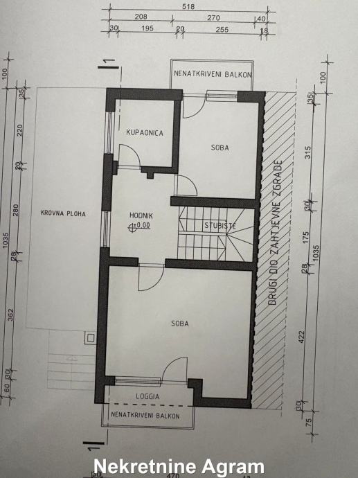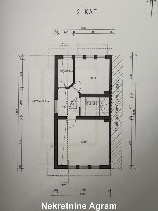 Potkrovlje-2 sobe , kupaona sa wc-om.