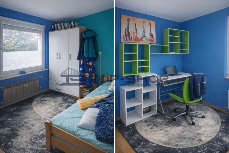 Stan raspolaže s dvije spavaće sobe i funkcionalnim rasporedom prostorija, što ga čini pogodnim za razne potrebe stanara. U stanu se nalazi i potpuno opremljena kuhinja, dnevni boravak, dva toaleta, te dodatna prostorija koja može poslužiti i kao spavaća soba.