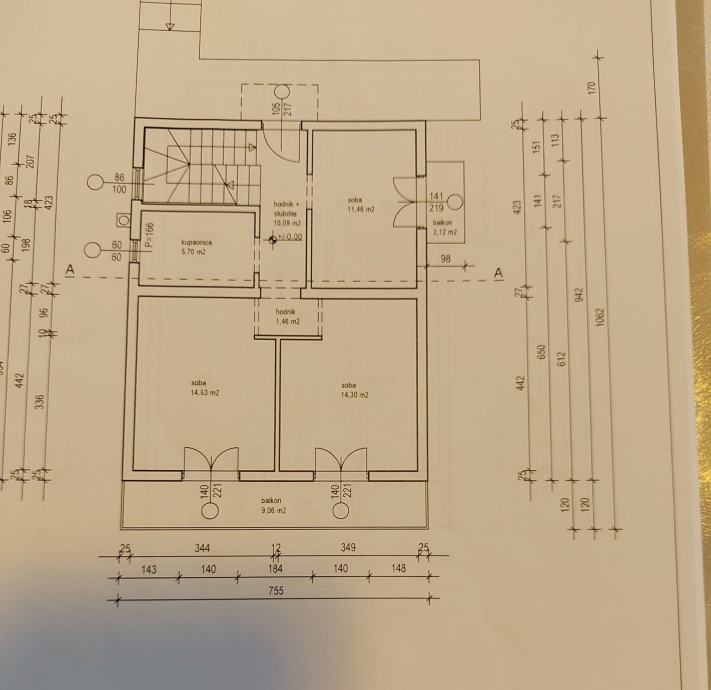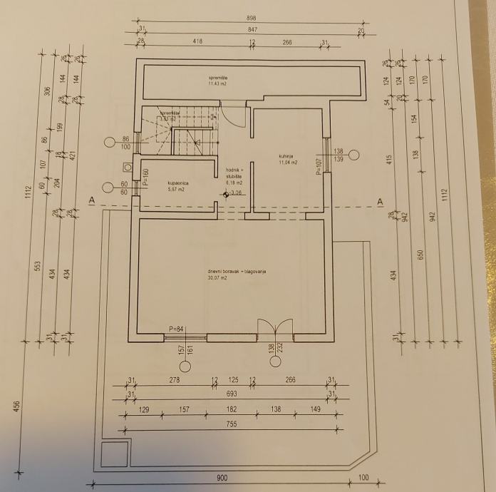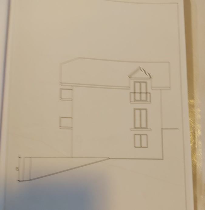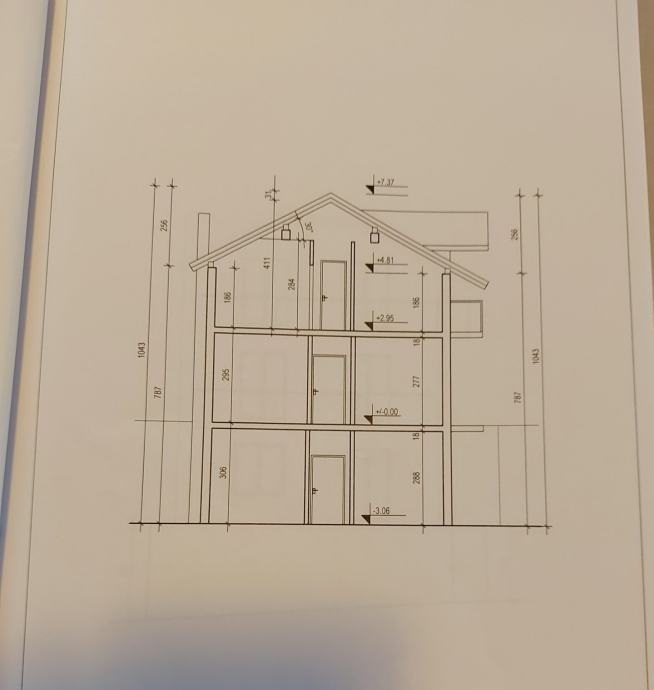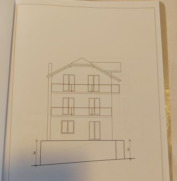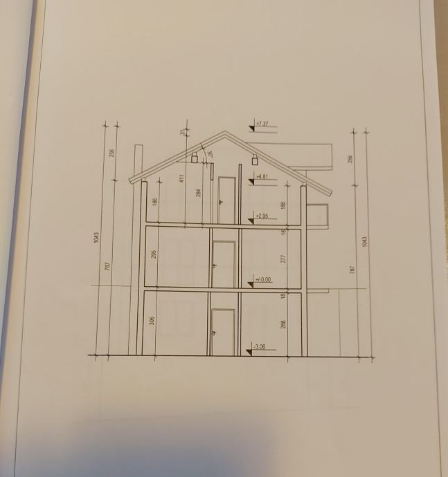 Sastoji se od 3 etaže, površine 78 m2. Mogućnost izvedbe dva do tri stana, te mogućnost uređenja 4-5 parkirnih mjesta i velike terase. Površina okućnice je 301m2. Prilaz objektu moguć s donje i gornje strane.