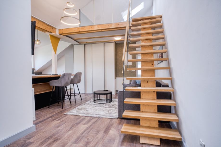 Iznajmljuje se prekrasan, renoviran dvoetažan stan na katu moderne obiteljske kuće smještene u mirnoj ulici u Gračanima.