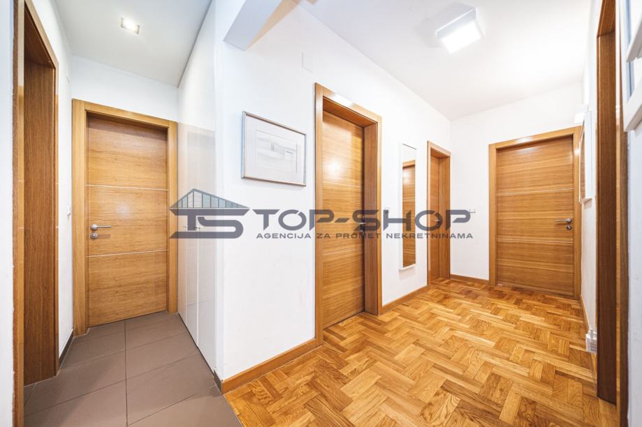Stan se odlikuje izuzetnim rasporedom prostora koji uključuje odvojeni dnevni boravak, zasebnu kuhinju, blagovaonicu, hodnik te tri spavaće sobe. Orijentacija stana je prema jugu, istoku i zapadu, što osigurava obilje prirodne svjetlosti tijekom cijelog dana te omogućuje lijep pogled na okolicu. Posebnu vrijednost stana čine balkon, terasa i vrt, koji pružaju dodatni prostor za opuštanje i boravak u prirodi.