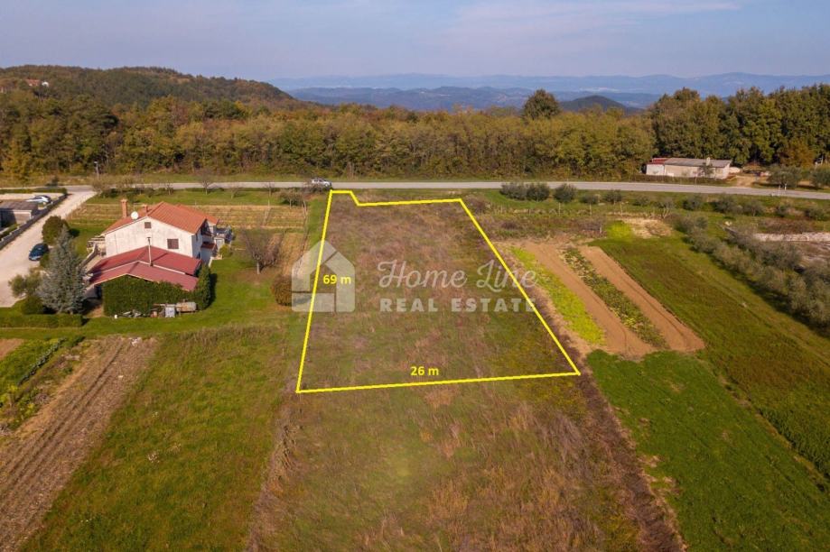 Površine je 1637 m2, pravilnog oblika sa blagim padom prema jugu. Namjena parcele je građevinska - stambena predviđena za izgradnju obiteljske kuće ili kuće za odmor. Prema prostornom planu Općine Gračišće moguće je izgraditi stambeni objekt sa najviše jednom podzemnom i najviše tri nadzemne etaže sa popratnim pomoćnim objektima. Na ovoj površini koeficijent izgrađenosti je maksimalno 40%. Obzirom na površinu, parcela se može parcelirati što daje mogućnost izgradnje dva slobodnostojeća objekta. Parcela ima direktan pristup na asfaltiranu cestu.