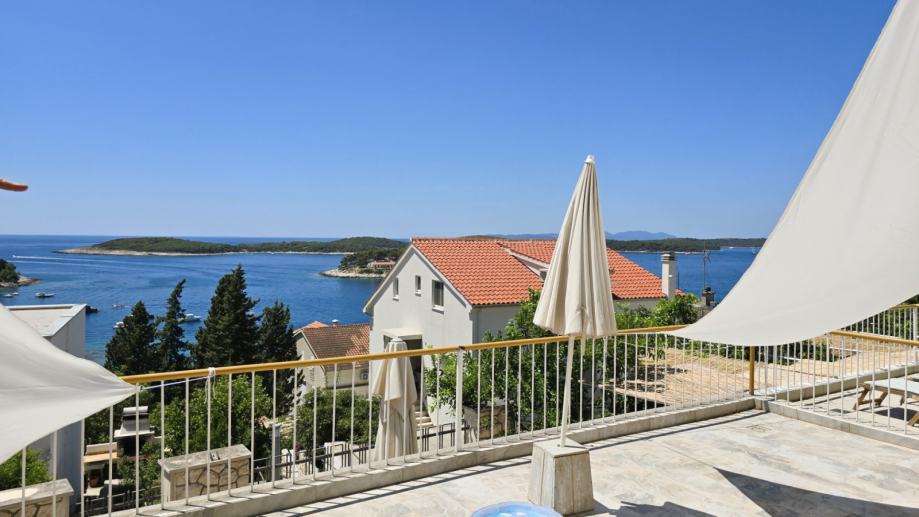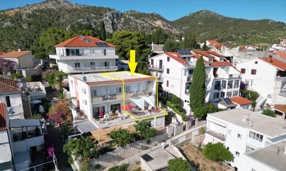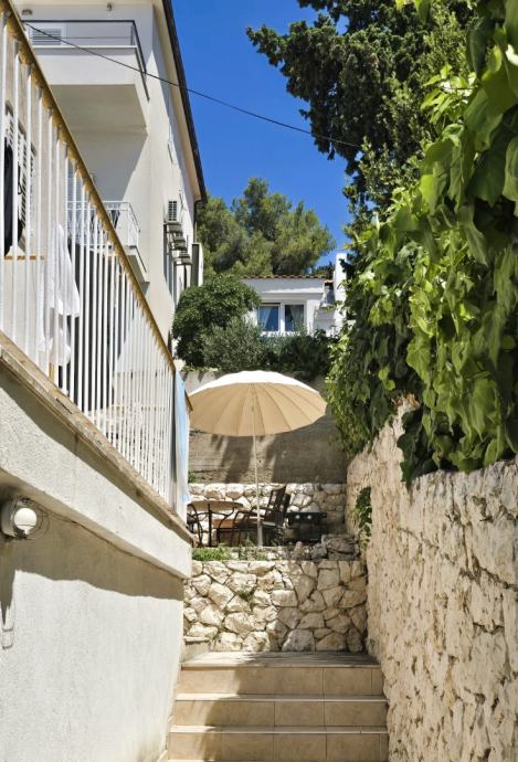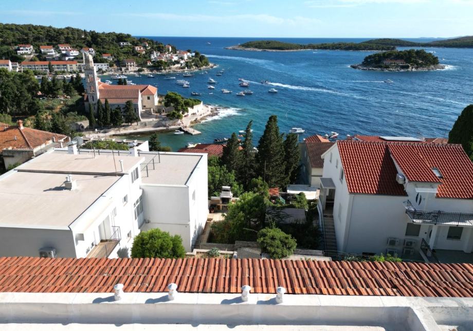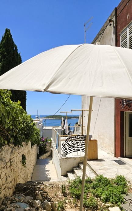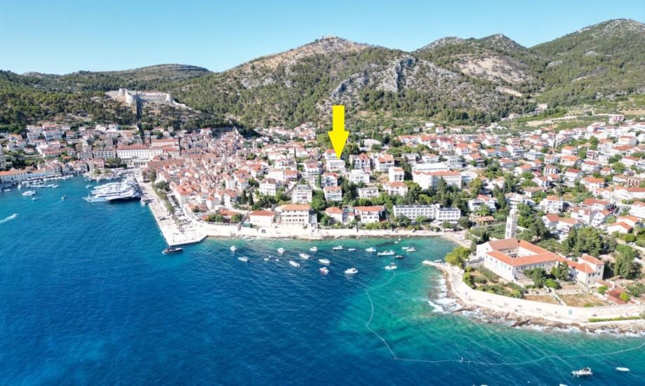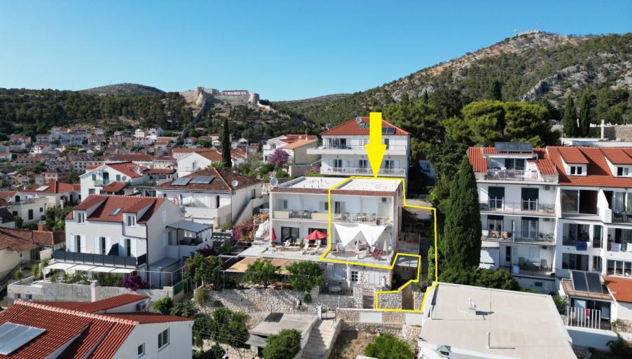 Dvije etaže dvojne kuće na atraktivnoj lokaciji u centru Grada Hvara, s fantastičnim pogledom na more, Paklene otoke, gradsku luku i zalazak sunca sa svih etaža, površine 176 m2, koje se sastoje od 8 soba, 8 kupaonica, velike terase na donjoj etaži, dva balkona na gornjoj etaži, unutrašnjeg stepeništa i ostave, s vrtom i dvorom ukupne površine 75 m2, pravo gradnje još jedne etaže, etažirano, uporabna dozvola, samo 90 metara od mora, južne orijentacije, sa izvrsnim potencijalom - mogućnost tri stana, boutique hotela i sl..