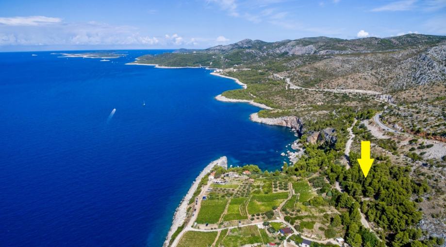 Atraktivno građevinsko zemljište površine 1.560 m2, smješteno na južnim padinama otoka Hvara, u blizini grada Hvara, u Zaraću, s fantastičnim pogledom na more, 150 metara od kristalno čistog mora i prekrasne šljunčane plaže, pravomoćna građevinska dozvola za vilu površine 195 m2, u dijelu gdje nikakva druga gradnja nije dozvoljena, prilaz autom, priključci vode i struje u neposrednoj blizini, RIJETKO NA TRŽIŠTU!