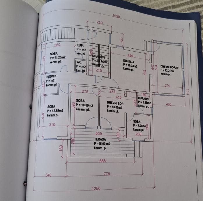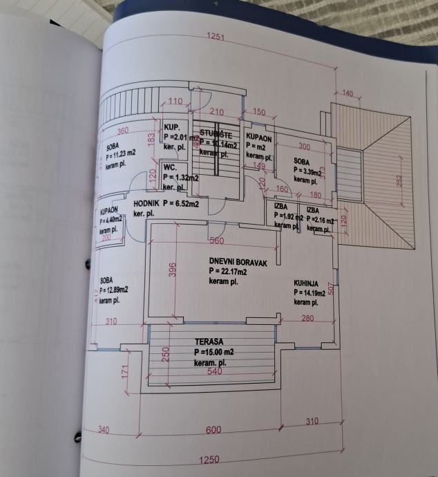 Prodaje se obiteljska kuća ukupne površine 360 m2. Kuća se prostire na tri etaže i sadržava podrum veličine 60 m2 u kojem se nalazi garaža, spremište, prostor za teretanu i sl.. Na prvom katu od 144,4 m2 se nalaze dva potpuno odvojena stana sa posebnim ulazima. Stan od 100 m2 ima dvije spavaće sobe sa vlastitim kupaonicama, open space dnevni boravak, kuhinju i blagovaonicu iz koje se izlazi na zimski vrt. Drugi manji stan je površine 35,58 m2 i sastoji se od dvije spavaće sobe, kuhinje, dnevnog boravka i kupaonice, te ima svoju zasebnu terasu od 15 m2.