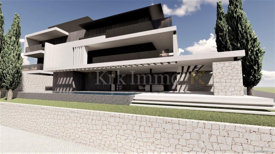 Novogradnja Krk - Moderni apartman s bazenom i pogledom na more
