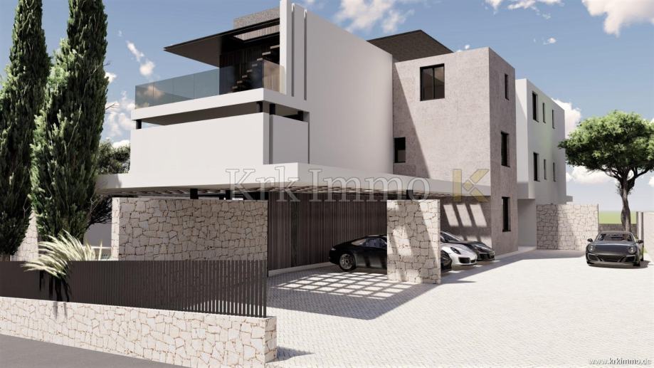 Grad Krk: Novi apartman s bazenom i pogledom na more (prodaja)