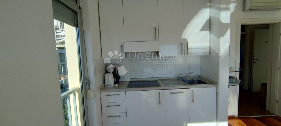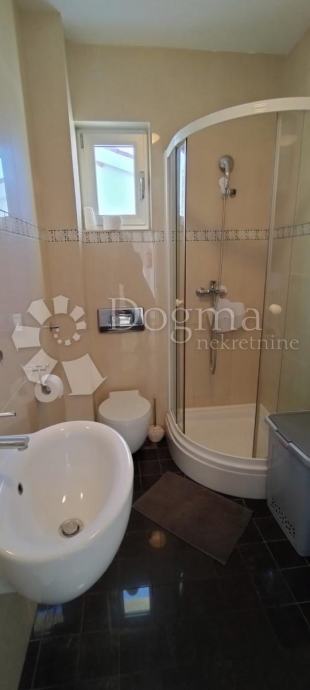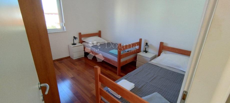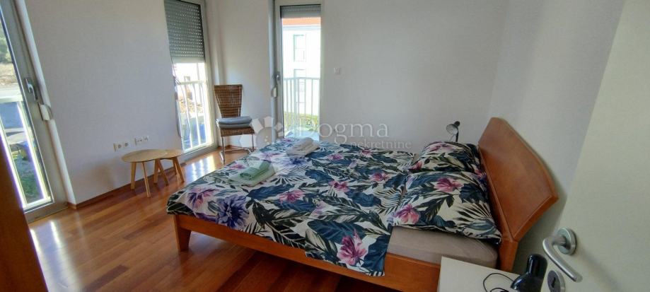 Ovaj stan površine 57 m2 sastoji se od dvije spavaće sobe, kupaonice, kuhinje, dnevnog boravka s blagovaonicom, balkona i terase s otvorenim pogledom na more. Uz stan dolazi i parkirno mjesto u garaži.