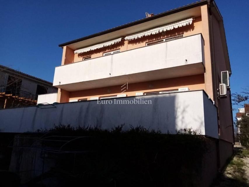 Grad Krk - kuća na prodaju na odličnoj lokaciji! Kuća se sastoji od suterena, prizemlja i kata. U prizemlju su dva apartmana, studio apartman i jednosobni apartman s velikom terasom. Na katu su dva apartmana. U suterenu je drvarnica. Okućnica je ograđena, idealna za napraviti bazen i roštilj. Kuća ima nekoliko parkirnih mjesta. Useljivo odmah!