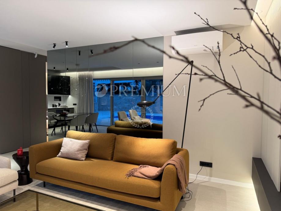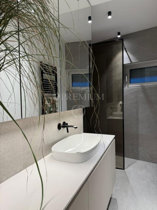 Karakterizira ga dobar raspored prostorija, kvalitetna sanitarna oprema od renomiranih proizvođača, protuprovalna vrata, priprema za video nadzor, aluminijska stolarija s električnim roletama te podne obloge od keramike i parketa u sobama. Provedeno je podno grijanje pomoću dizalice topline te klimatizacija (Daikin klima uređaji) u svim prostorijama.