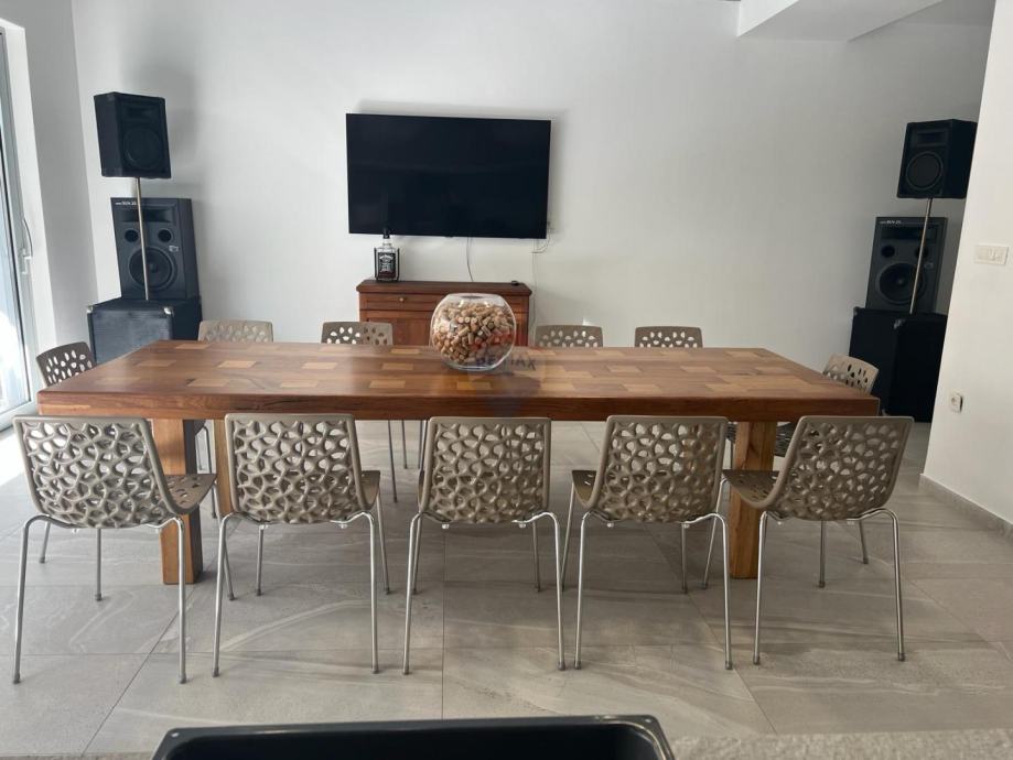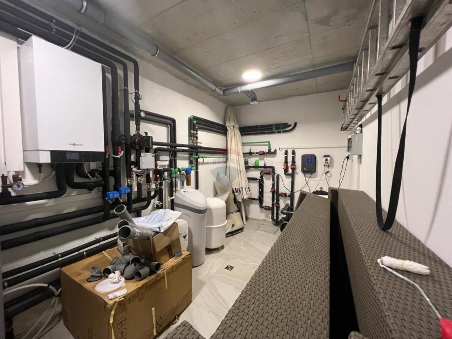 U podrumu se nalazi strojarnica bazena, wc, i veliki prostor za druženje sa ozvučenjem, velikom kuhinjom i dvije dodatne prostorije koje se mogu koristiti po želji novog kupca. Iz kuhinje i prostora za druženje se izlazi na vanjsku terasu.