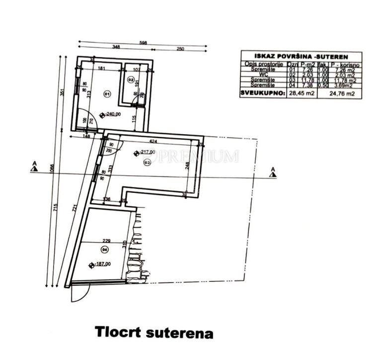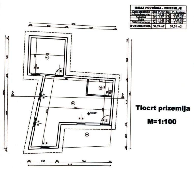 Kuća neto površine 96 m2 sastoji se od suterena i prizemlja.