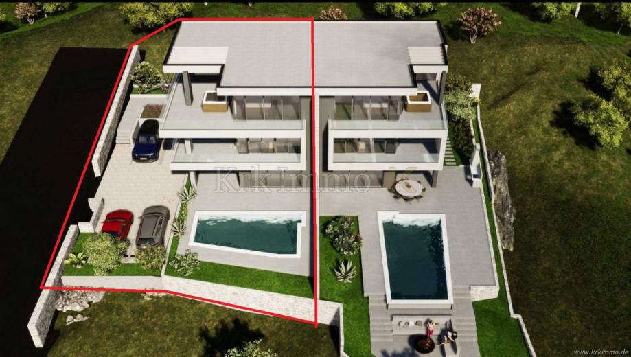 Prodaje se izvanredna dvojna kuća smještena na prestižnoj lokaciji u gradu Krku, samo 300 metara od mora. Ova luksuzna nekretnina prostire se na 239 m2 i raspoređena je na tri etaže, koje su povezane unutarnjim stepenicama. Kuća nudi vrhunski komfor, moderan dizajn i pažljivo odabrane materijale te je idealna za one koji traže kvalitetan život u blizini mora, uz sav luksuz i udobnost.