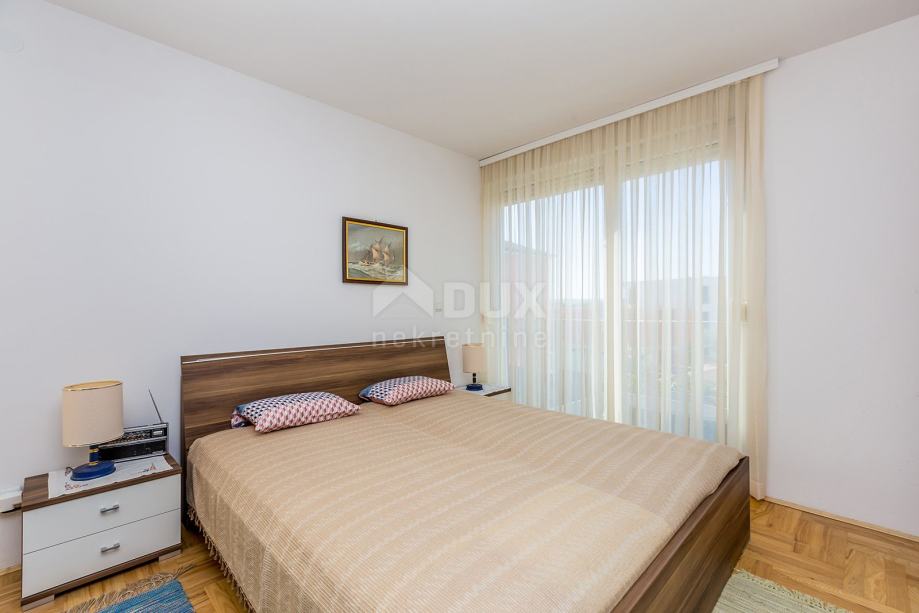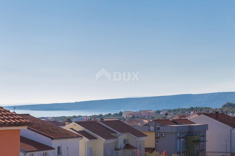 Grad Krk - namješteni dvoetažni trosobni apartman na odličnoj lokaciji. Sastoji se od tri spavaće sobe i kupaonice na prvom katu te dnevnog boravka, kuhinje s blagovaonom i lođom od 11 m2 u visokom potkrovlju. S terese ima djelomičan pogled na more. Apartman je uređen i u potpunosti namješten. Sadrži protuprovalna vrata, klima uređeje i PVC stolariju.