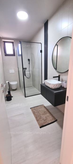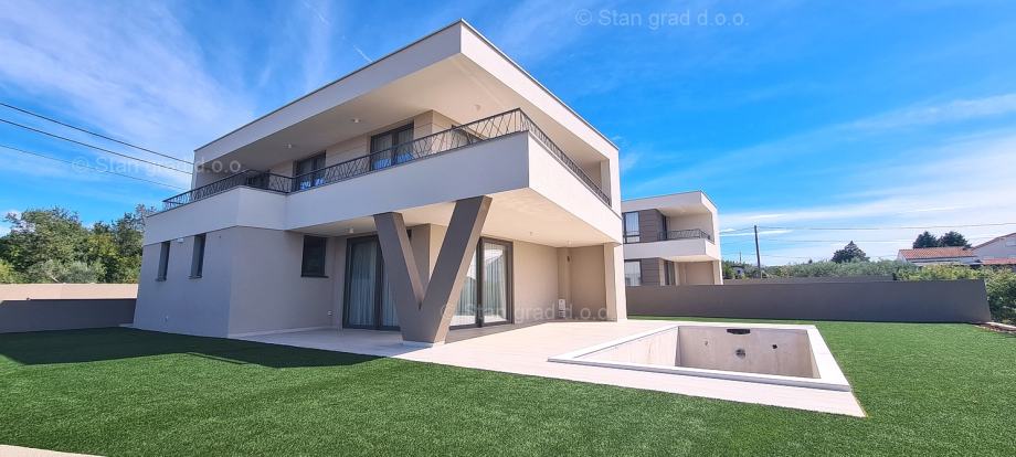 Prema vrsti objekta, građevina se može kategorizirati kao samostojeća kuća katnica s jednom stambenom jedinicom. Moderno projektirana kuća obuhvaća koristan prostor na sveukupno 2 etaže. Kuća obuhvaća ukupnu brutto površinu od 213 m2 (netto 173 m2). Navedenom površinom su obuhvaćeni ulazni prostor, dnevni boravak s kuhinjom i blagovaonom, jedna spavaća soba s kupaonom, zasebni wc, relax soba sa saunom, 2 spremišta i velika natkrivena terasa u prizemlju. Na katu se nalaze 3 spavaće sobe s izlazima na terasu, 2 kupaonice, garderoba. Interijer nekretnine je opremljen setom kvalitetne tehničke opreme i komadima dobrog namještaja. Vlasništvo ove kuće sadržava i pažljivo uređenu okućnicu posebno oplemenjenu bazenom od 25 m3 i sunčalištem te dva parkirna mjesta.