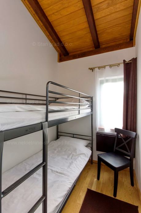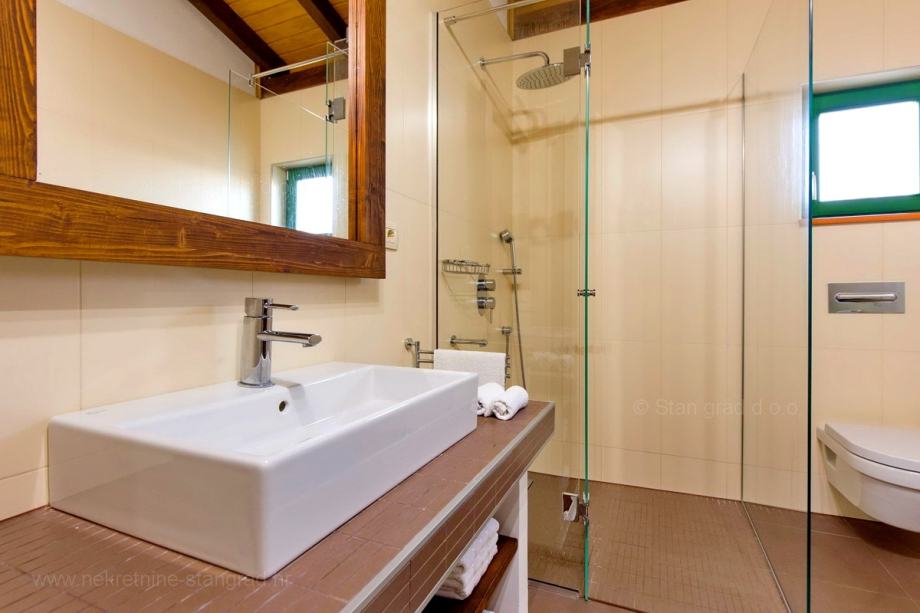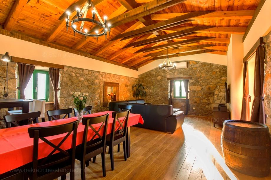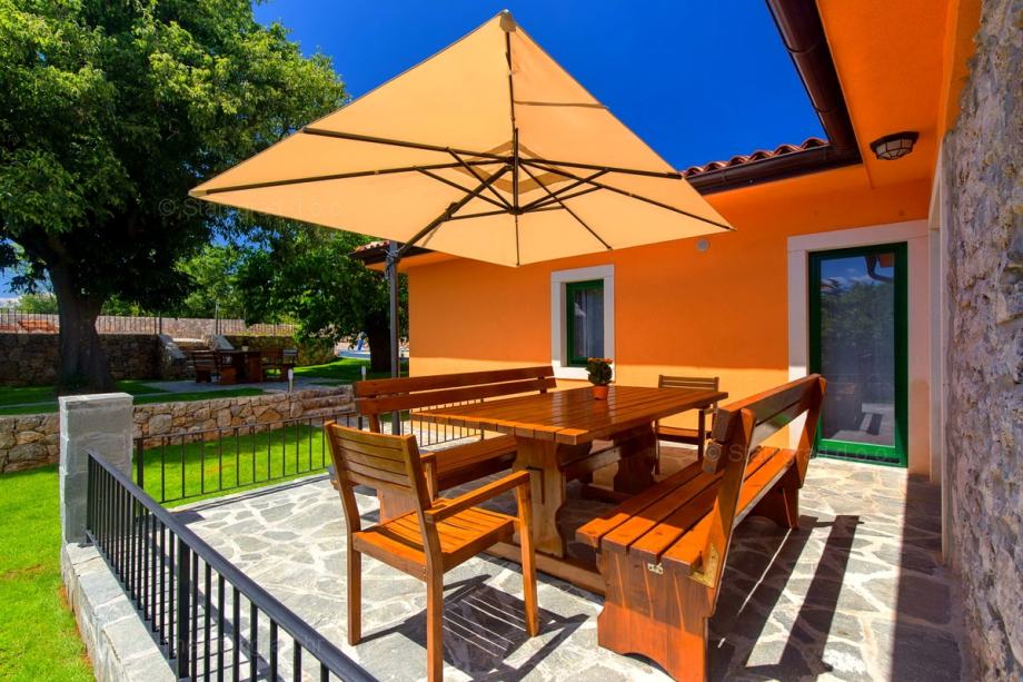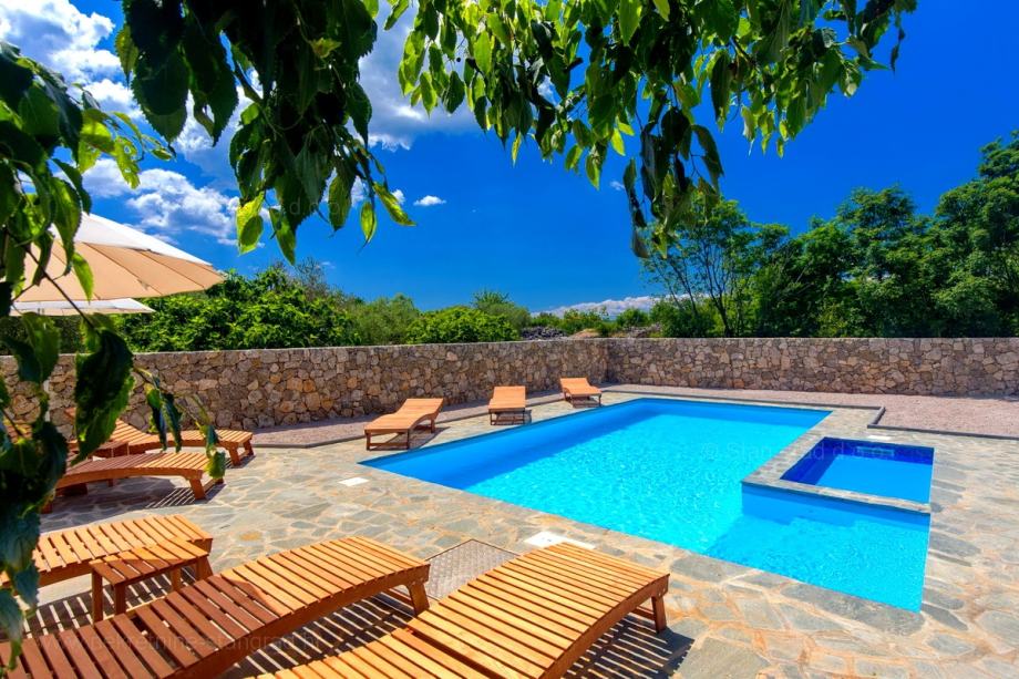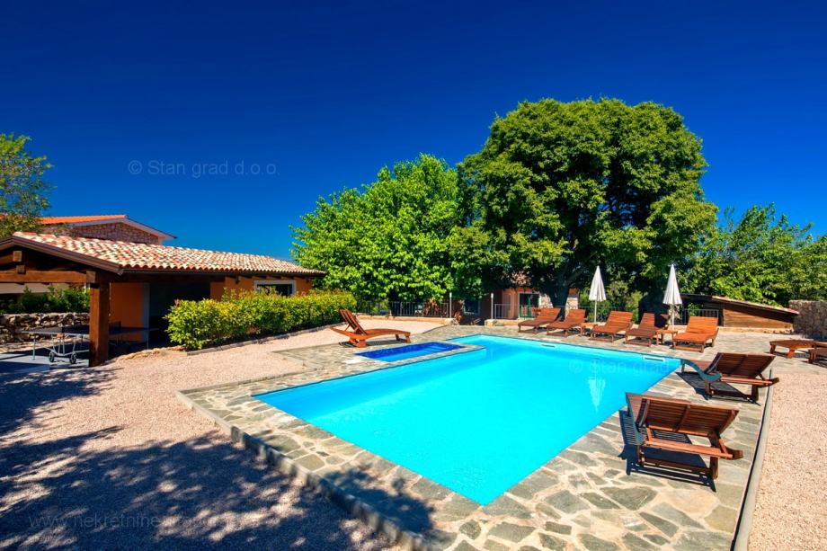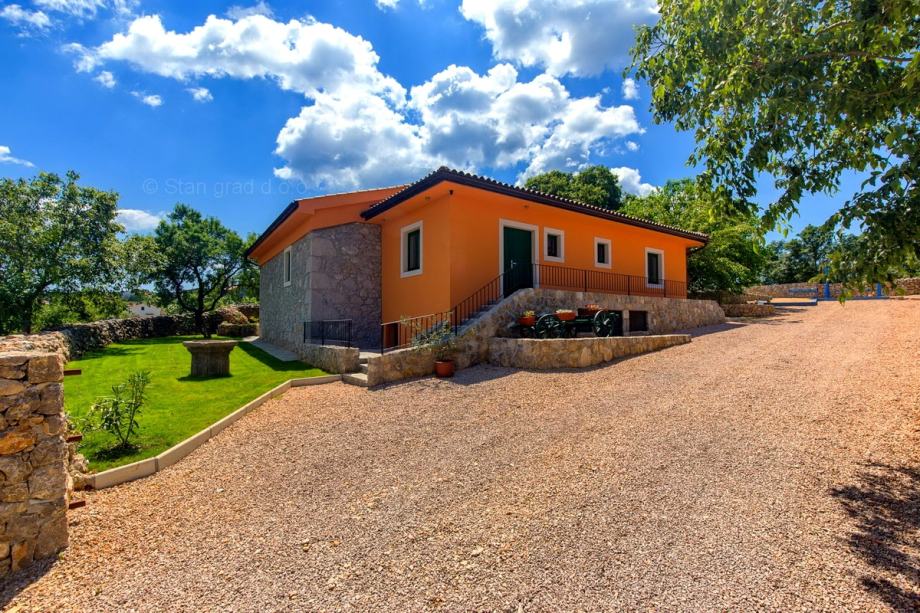 Na prodaji kod agencije Stan Grad Immobilien je vrlo dobra kuća u mediteranskoj regiji otok Krk, tradicionalno atraktivnom području za turistički boravak na hrvatskom Jadranu. Nekretnina se nalazi nadomak grada Krka, na lokaciji koja nudi uživanje u zelenilu prirode. Prema tipu, nekretnina se može opisati kao samostojeća kuća visoka prizemnica sa suterenom. Nekretnina je projektirana za samostalno jedno obiteljsko stanovanje. Ukupna površina ove kuće iznosi 160 m2. U navedenoj površini sadržani su ulazni hodnik, dnevni boravak i kuhinja, 4 spavaće sobe, 2 kupaonice i terase. U suterenu se nalazi još jedna spavaća soba, kupaonica, gostinjski toalet i prostrana konoba s kuhinjom i kaminom. Nekretnina je kompletno opremljena modernim namještajem te suvremenom i kvalitetnom tehničkom opremom. U okviru posjeda je odlično uređena okućnica s bazenom, sunčalište, natkriveni jacuzzi, ljetna kuhinja s prostorom za druženje i kamenim roštiljem. Na spomenutoj okućnici nekretnine može se komforno parkirati više automobila na uređenom prostoru. Osim navedenog, treba napomenuti da kuća ima lijep pogled na ovo primorsko mjesto. Ova je kuća vlasništvo fizičke osobe i na prijenos njenog vlasništva obračunava se porez na promet nekretnina u visini 3%. Prodavatelj jamči čistu vlasničku dokumentaciju kuće te lagan prijenos nekretnine. U ovom velikom koraku, vaš partner Stan Grad Immobilien tu je da vam pruži svu potrebnu podršku i sigurnost u kupovini nekretnine. Agenti ureda Stan Grad Immobilien će vam rado pomoći u administrativnim poslovima oko prijenosa vlasništva i računa nekretnine.